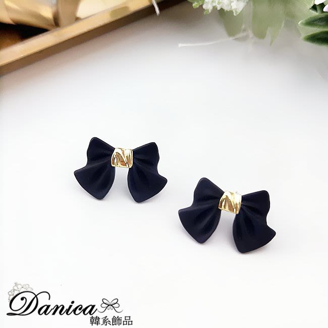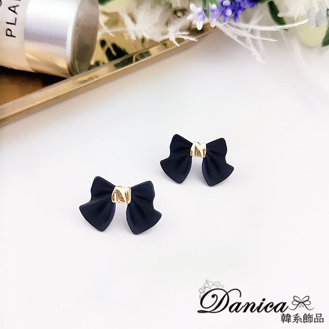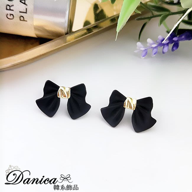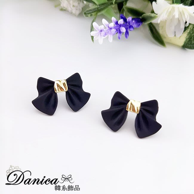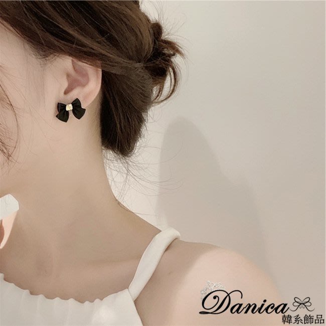 925銀針 夾式耳環 韓國女神氣質甜美百搭公主蝴蝶結耳環 K93807 台灣出貨 Danica 韓系飾品黑色針式|黑色夾式(無耳洞配戴)Danica 韓系飾品 耳環