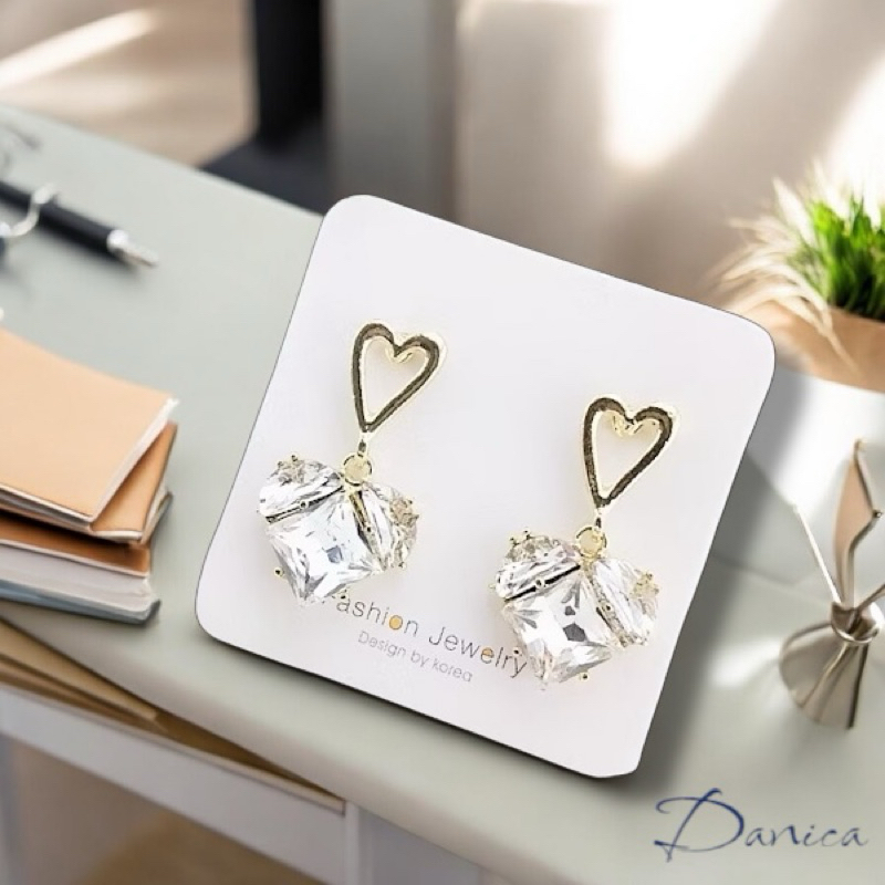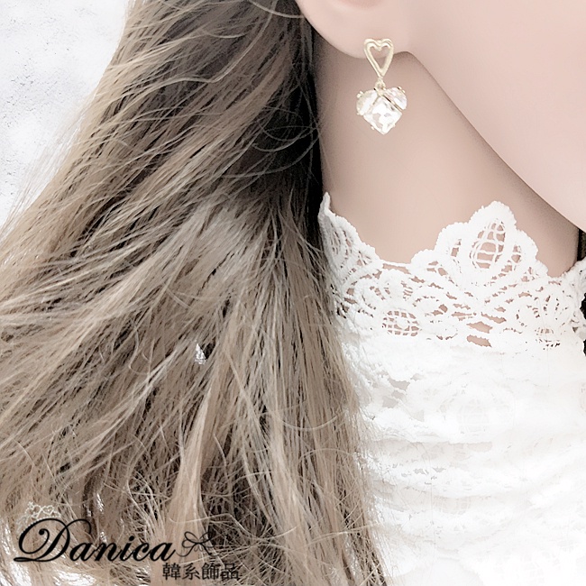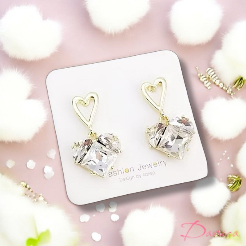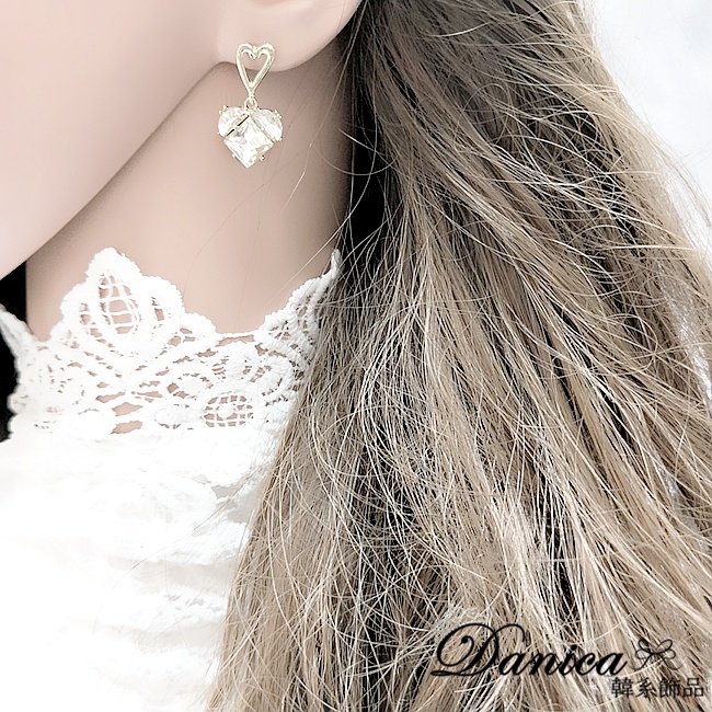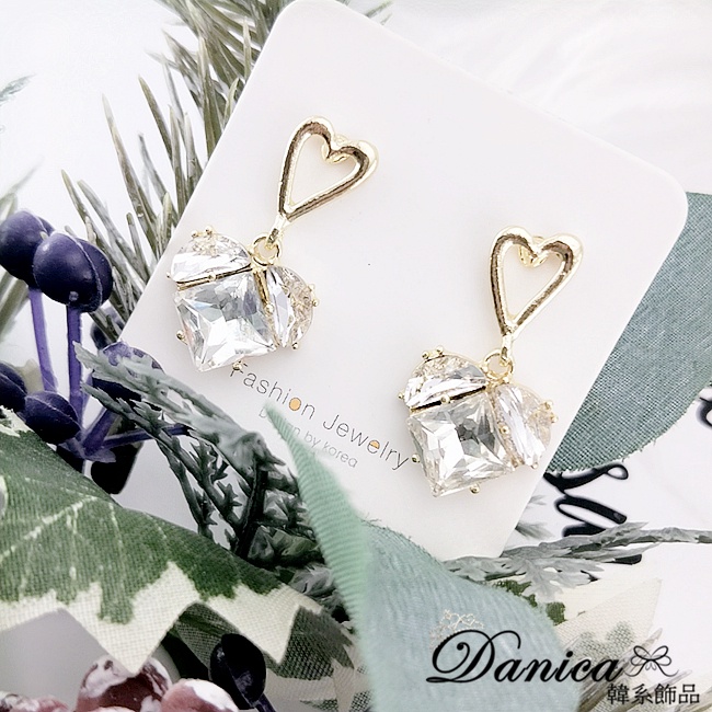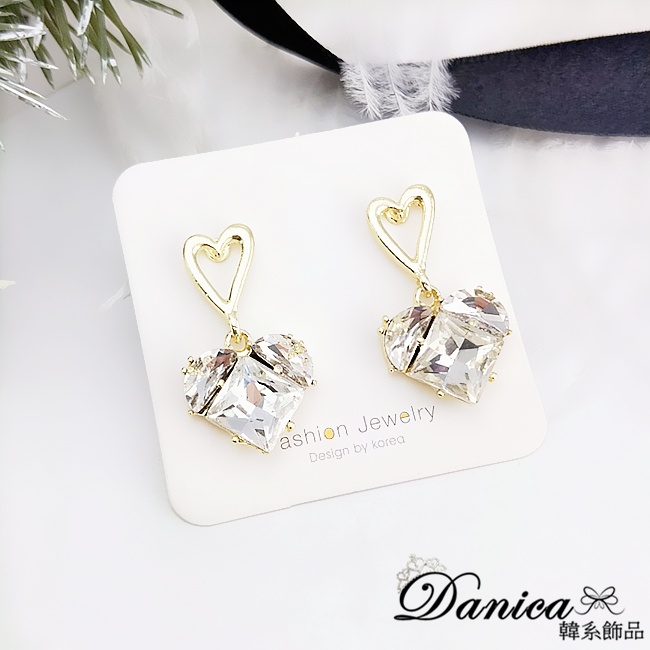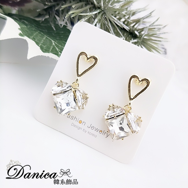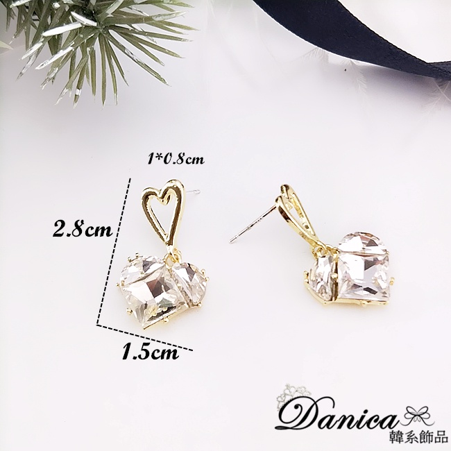 925銀針 韓國女神氣質甜美百搭幾何愛心寶石水晶垂墜耳環 K93913 台灣出貨 Danica 韓系飾品 韓國連線金色針式Danica 韓系飾品 耳環