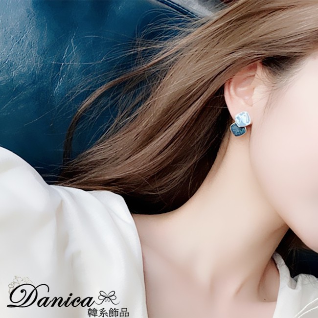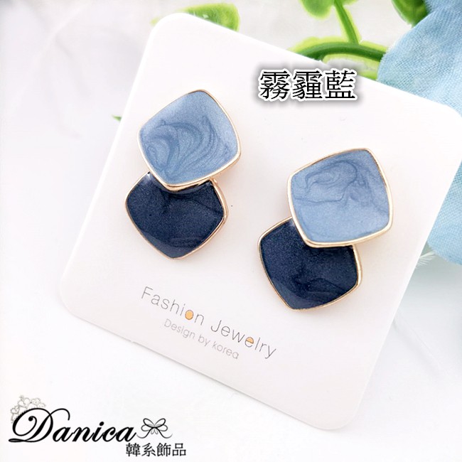針式 夾式耳環 韓國少女氣質甜美百搭簡約幾何菱形耳環 K93432 台灣出貨 Danica 韓系飾品 韓國連線針式|夾式(無耳洞配戴)|霧霾藍針式|霧霾藍夾式(無耳洞配戴)Danica 韓系飾品 耳環