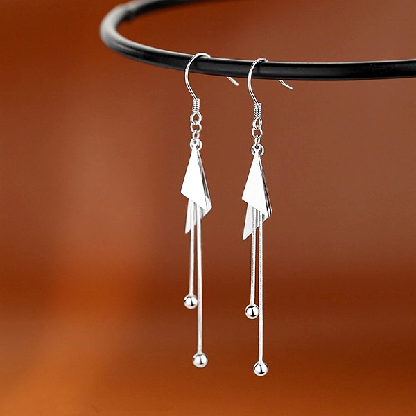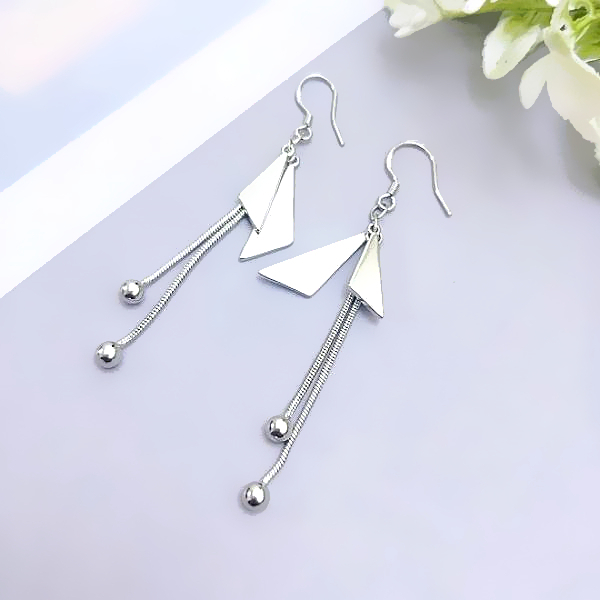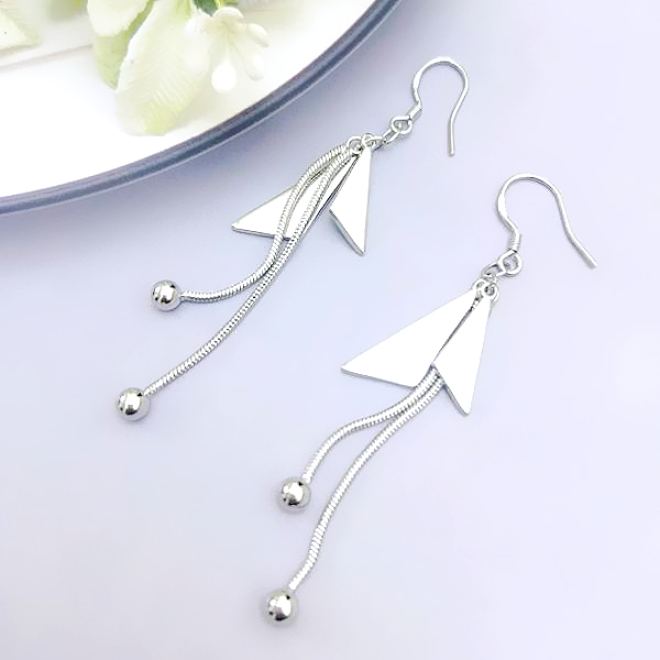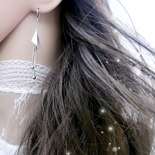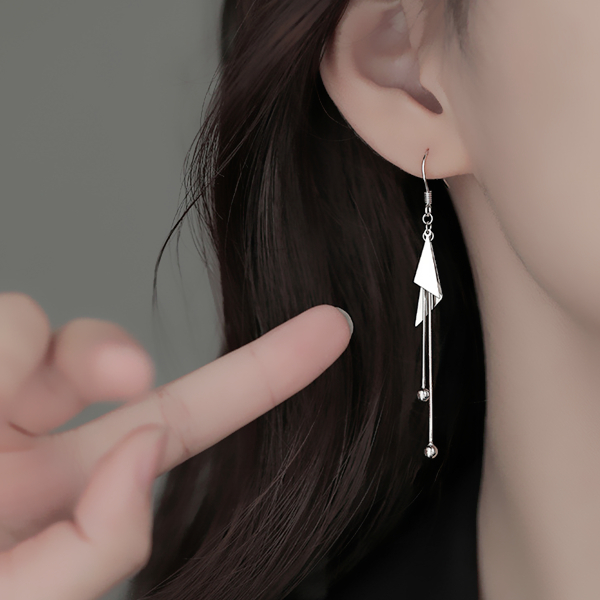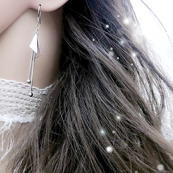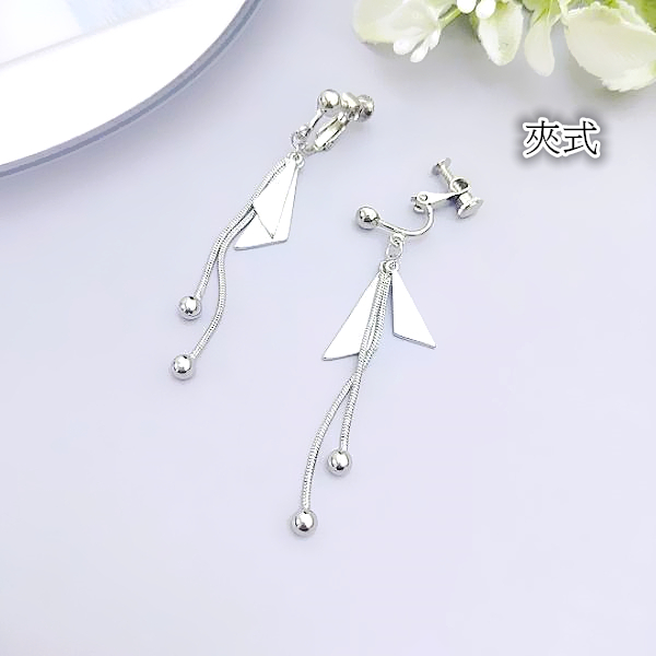 針式 夾式耳環 耳勾 韓國女神魅力簡約金屬感幾何三角形流蘇耳環 K94034 台灣出貨 Danica 韓系飾品 韓國連線銀色夾式(無耳洞配戴)|銀色耳勾針式Danica 韓系飾品 耳環