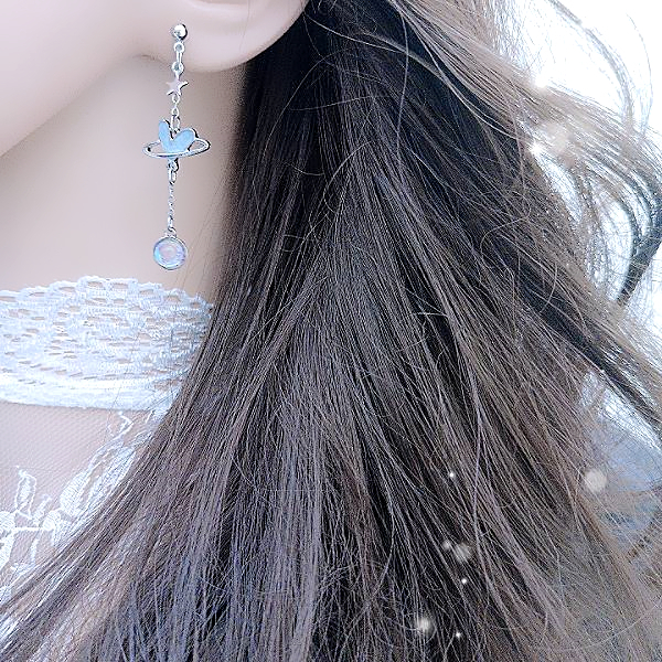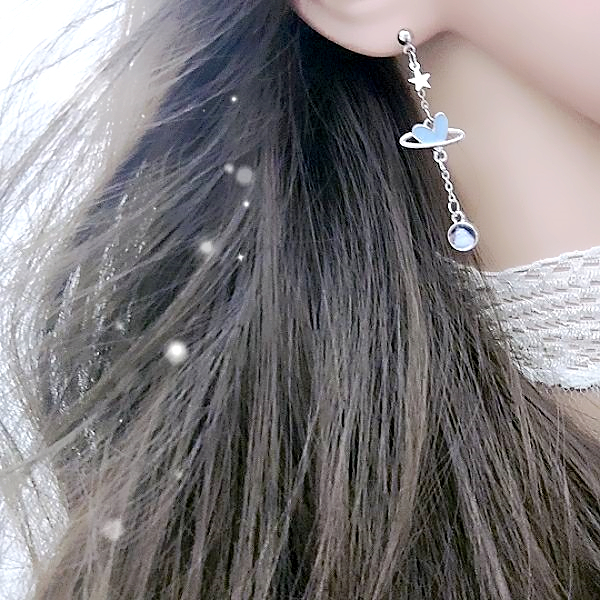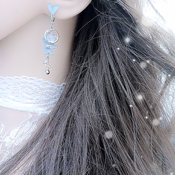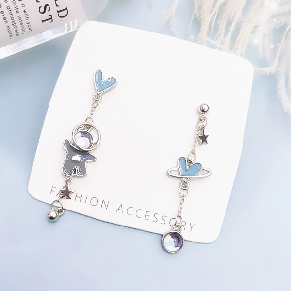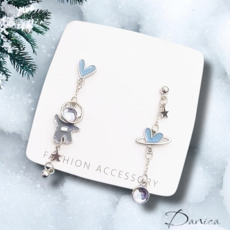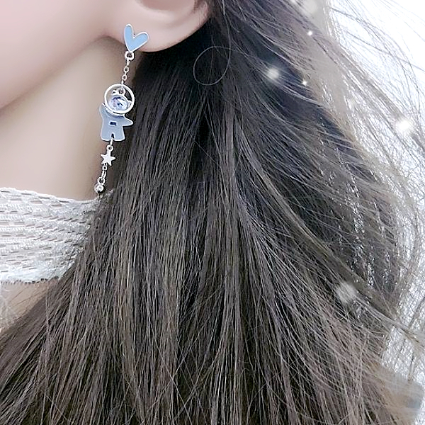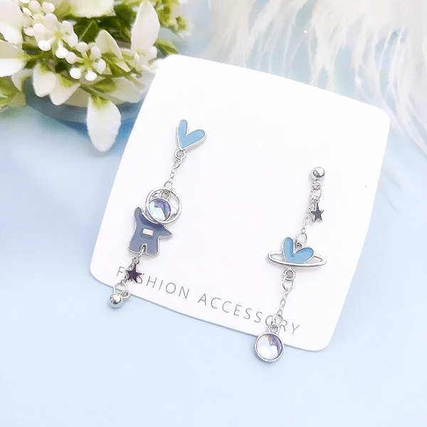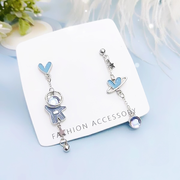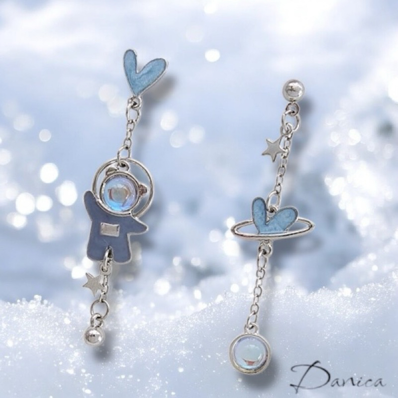 925銀針 夾式耳環 韓國少女氣質浪漫太空小熊愛心不對稱流蘇耳環 K94082 台灣出貨 Danica 韓系飾品如圖不對稱針式|如圖不對稱夾式(無耳洞配戴)Danica 韓系飾品 耳環
