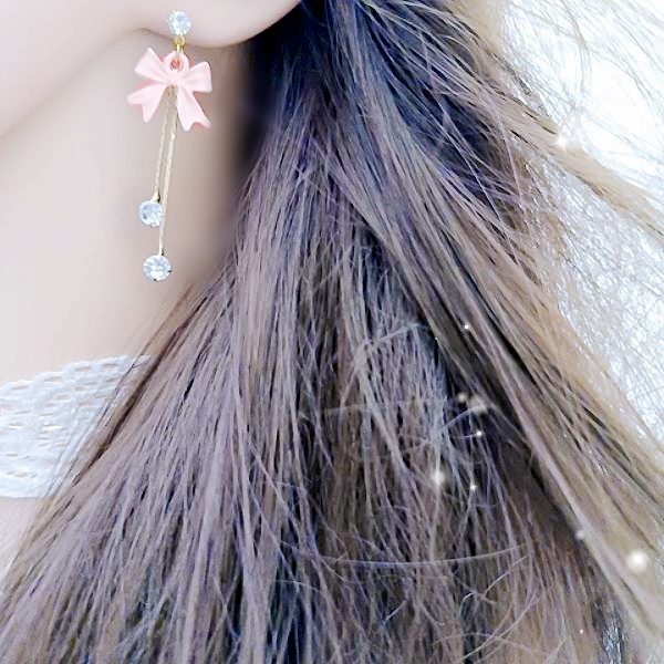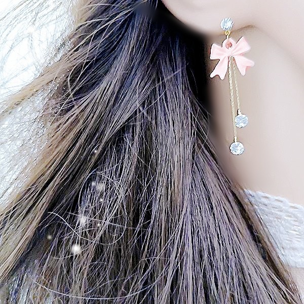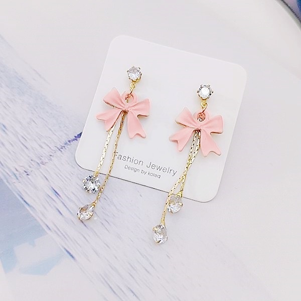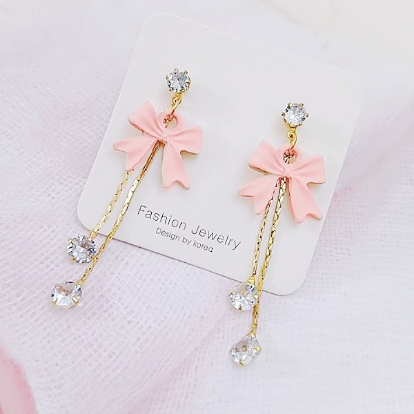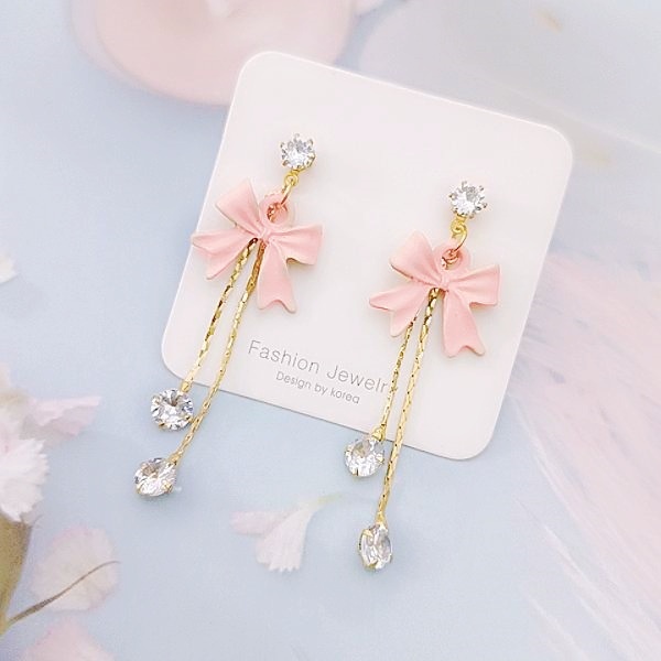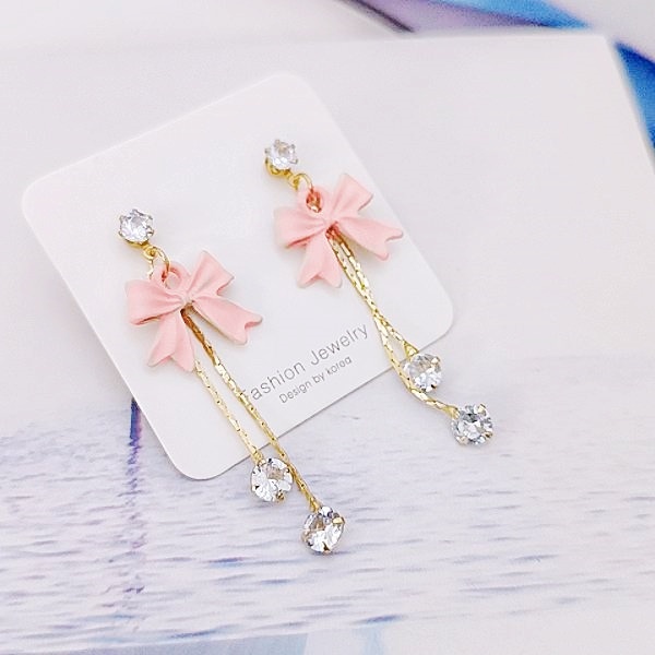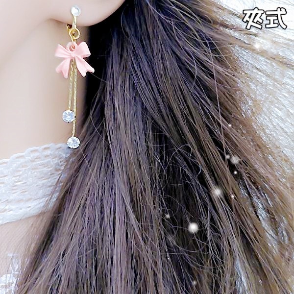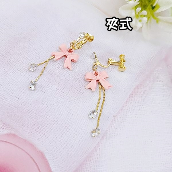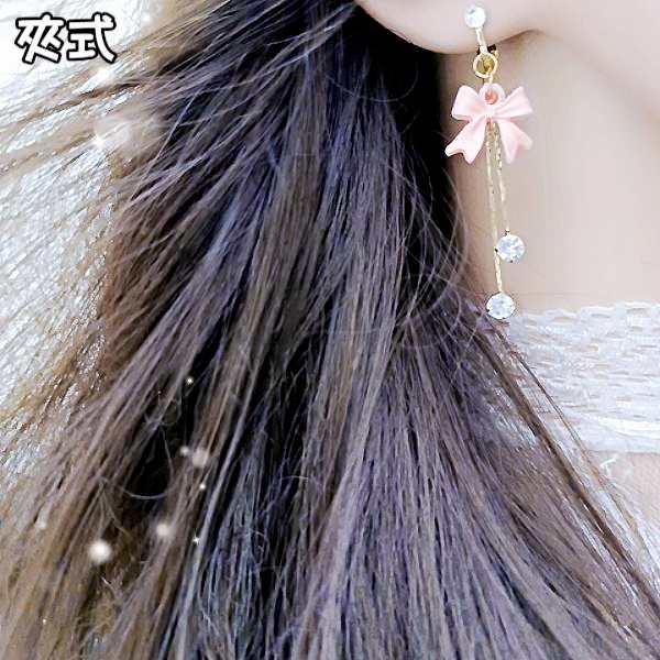 925銀針 夾式耳環 韓國少女氣質甜美蝴蝶結鋯石流蘇耳環 K94235 台灣出貨 Danica 韓系飾品 韓國連線如圖針式|如圖夾式(無耳洞配戴)Danica 韓系飾品 耳環