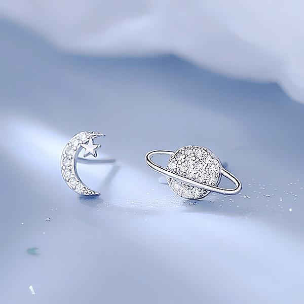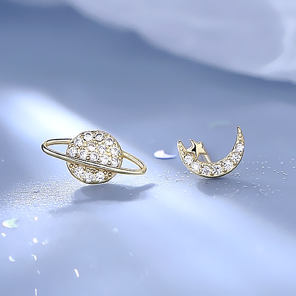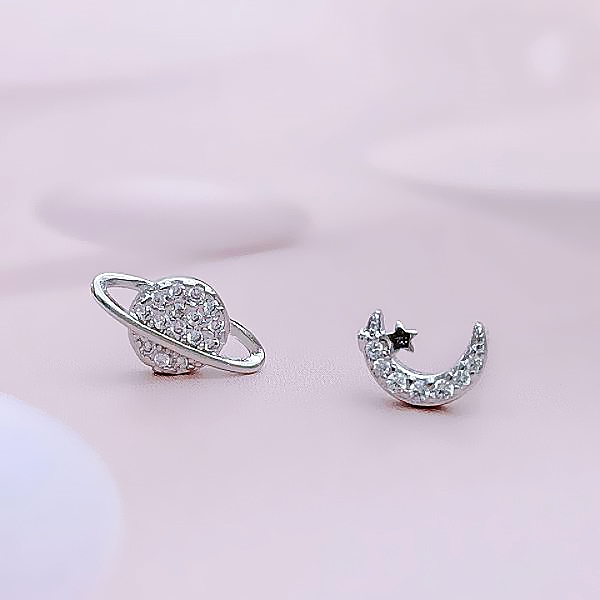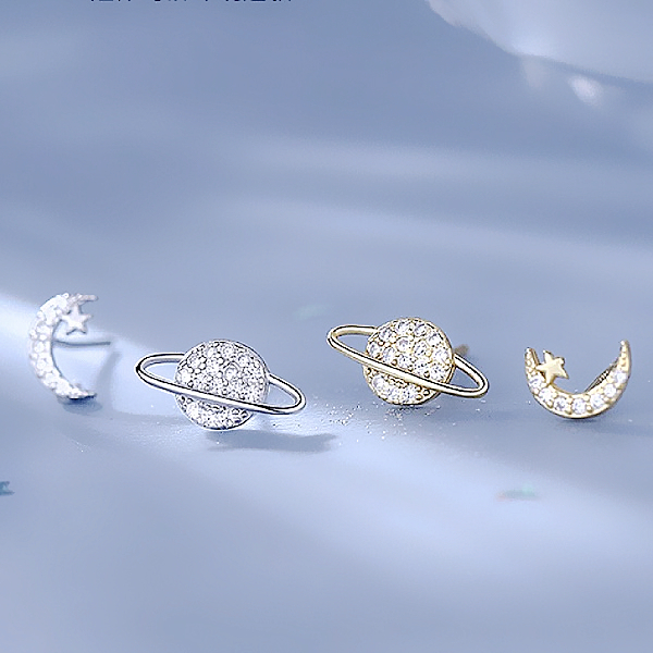 925銀針 夾式耳環 韓國少女氣質浪漫微鑲星球月亮不對稱鋯石耳環 K94142 台灣出貨 Danica 韓系飾品金色不對稱矽膠U型夾式(無耳洞配戴)|銀色不對稱針式|金色不對稱針式|銀色不對稱矽膠U型夾式(無耳洞配戴)Danica 韓系飾品 耳環