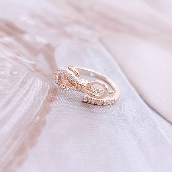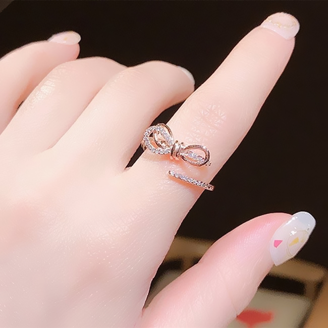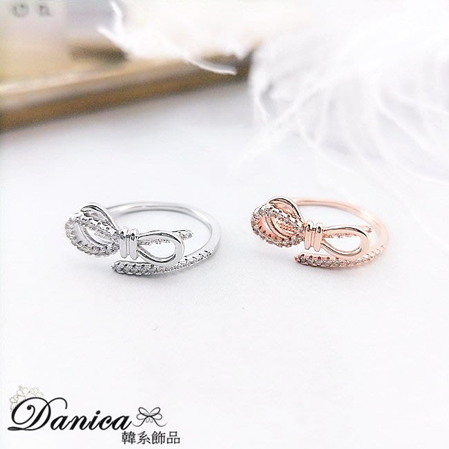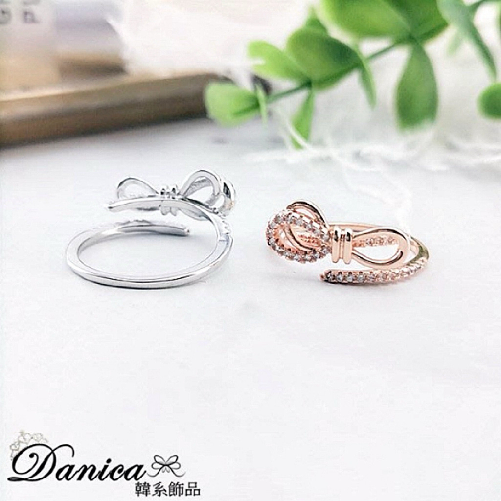 戒指 韓國女神氣質甜美浪漫微鑲法式蝴蝶結鋯石開口戒指 K5240 台灣出貨 Danica 韓系飾品 韓國連線
