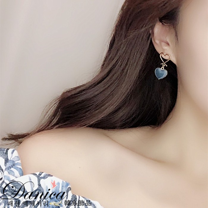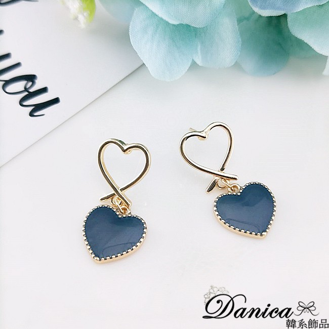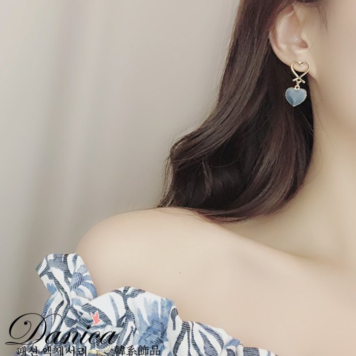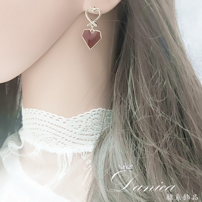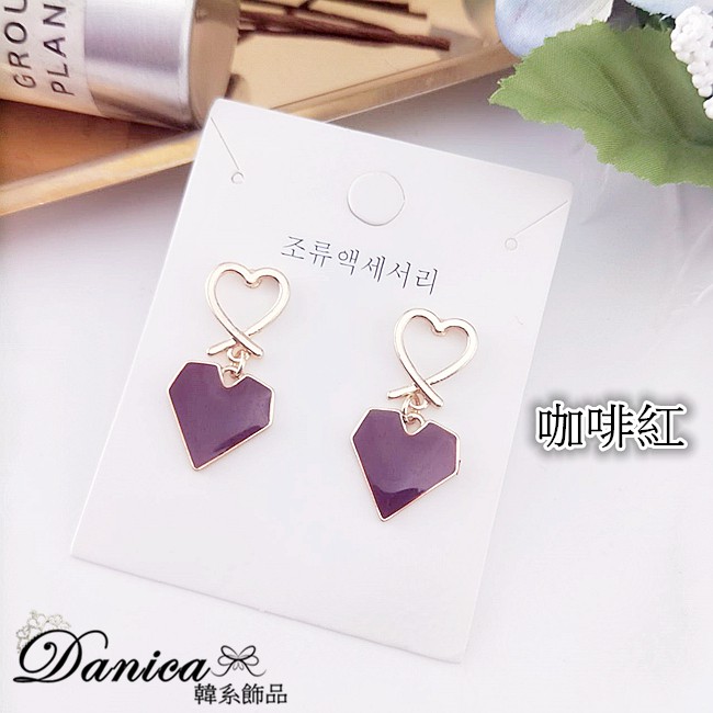 針式 韓國少女簡約甜美幾何愛心垂墜耳環 K93006 批發價 Danica 韓系飾品 韓國連線如圖針式|咖啡紅針式Danica 韓系飾品 耳環