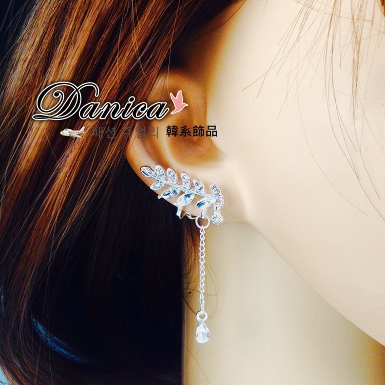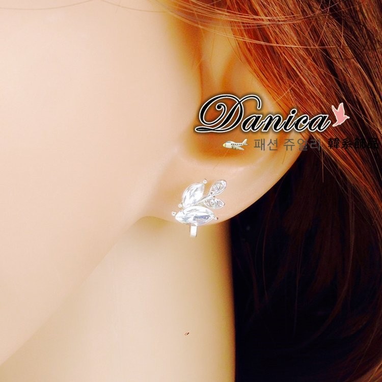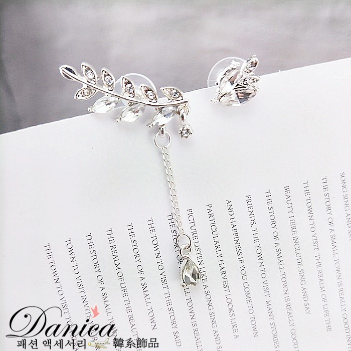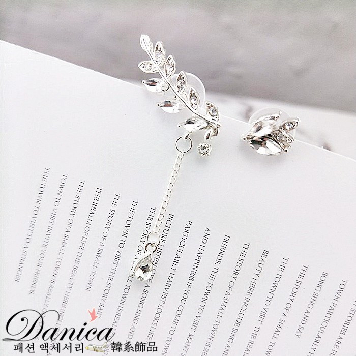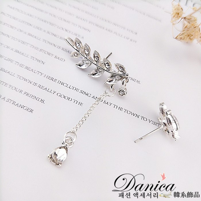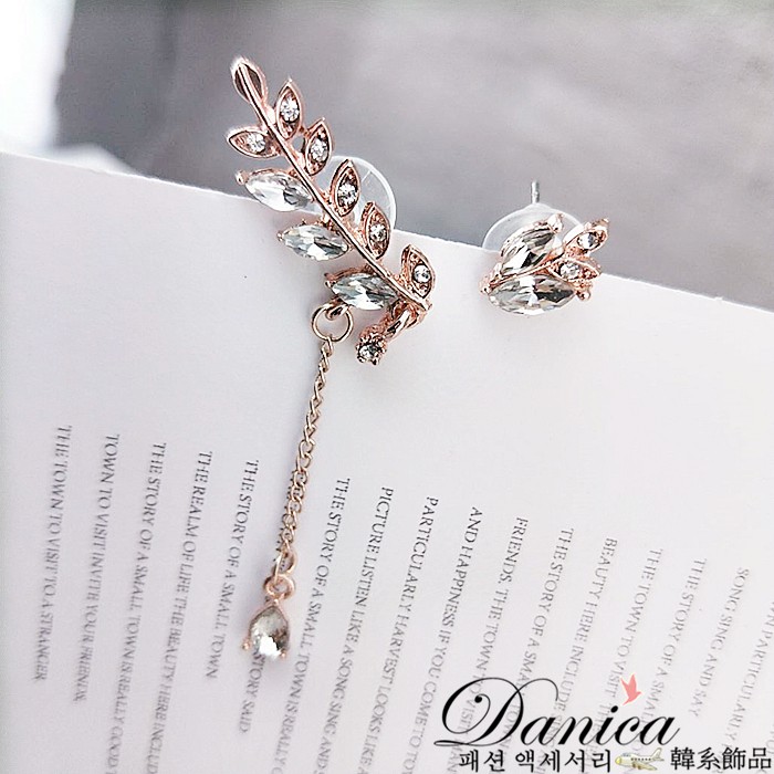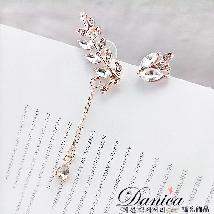 針式 夾式耳環 韓國時尚氣質潮風葉子不對稱水鑽耳環 K92465 台灣出貨 Danica 韓系飾品 韓國連線銀色不對稱針式|銀色不對稱夾式(無耳洞配戴)|玫瑰金不對稱夾式(無耳洞配戴)Danica 韓系飾品 耳環