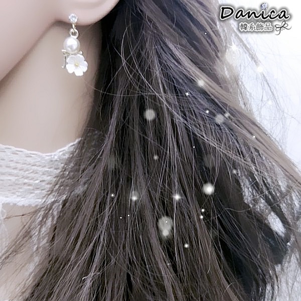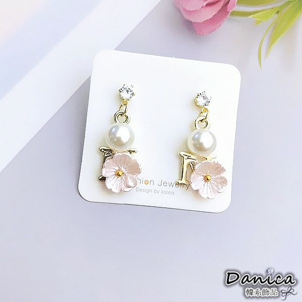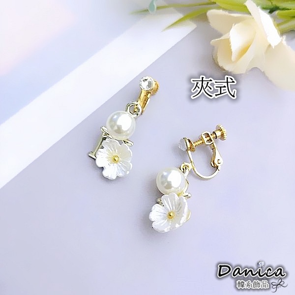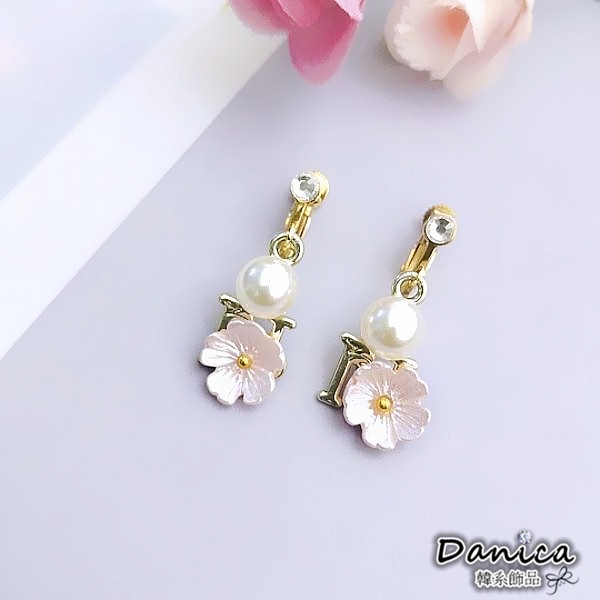 925銀針 夾式耳環 韓國氣質浪漫小香風花朵珍珠垂墜耳環 K93927 台灣出貨 Danica 韓系飾品 韓國連線白花針式|粉花針式|白花夾式(無耳洞配戴)|粉花夾式(無耳洞配戴)Danica 韓系飾品 耳環