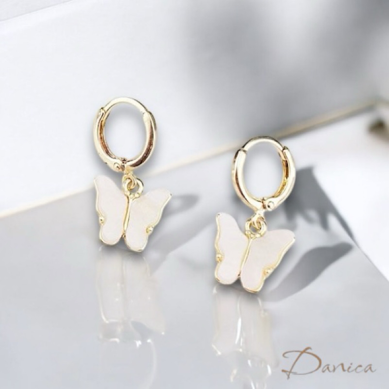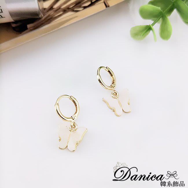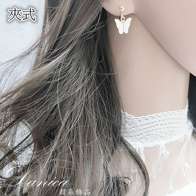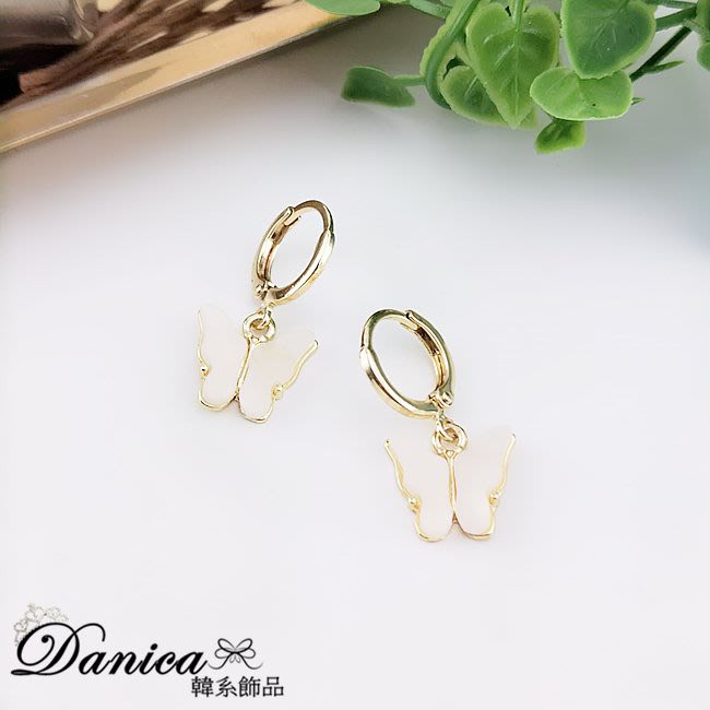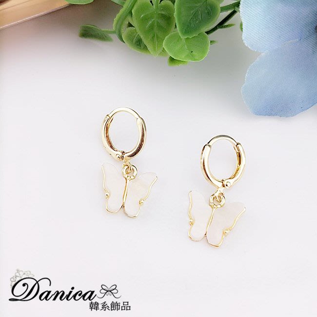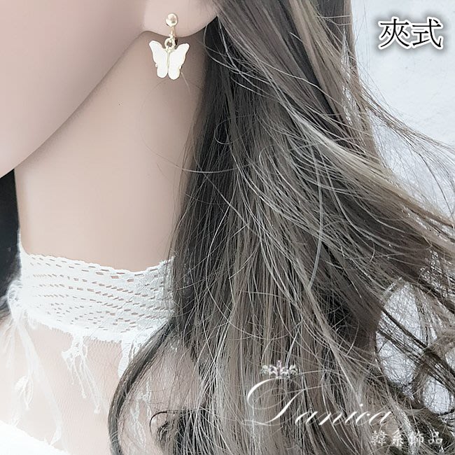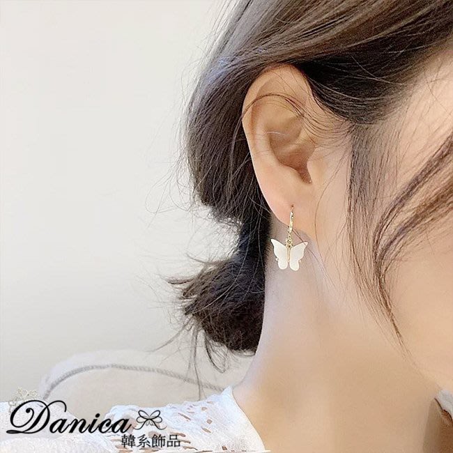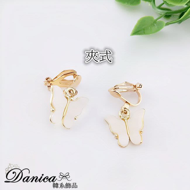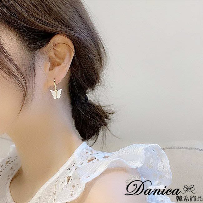 耳扣 夾式耳環 針式 韓國女神氣質浪漫百搭蝴蝶紛飛垂墜耳環 K93718 台灣出貨 Danica 韓系飾品 韓國連線金色耳扣針式|金色夾式(無耳洞配戴)Danica 韓系飾品 耳環