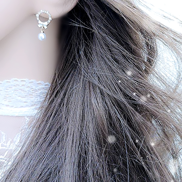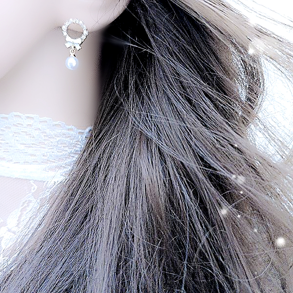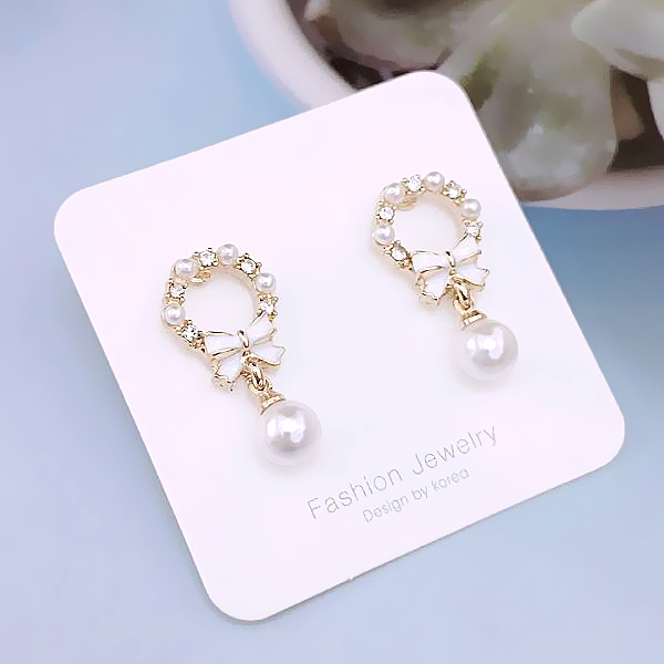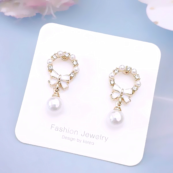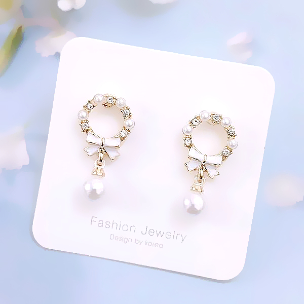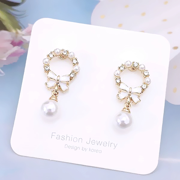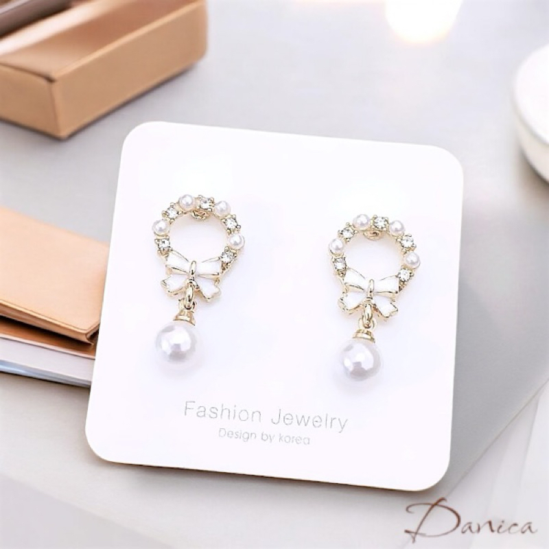 925銀針 夾式耳環 韓國女神氣質甜美公主蝴蝶結花圈珍珠水鑽耳環 K94168 台灣出貨 Danica 韓系飾品金色針式|金色夾式(無耳洞配戴)Danica 韓系飾品 耳環