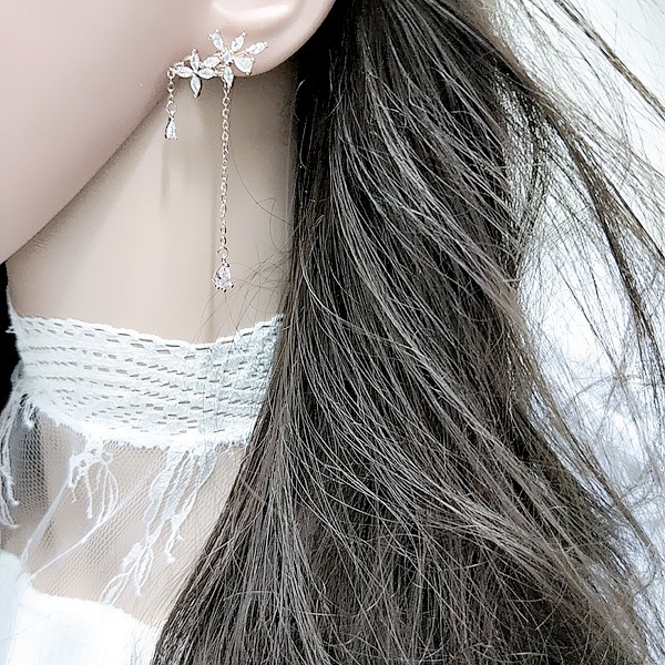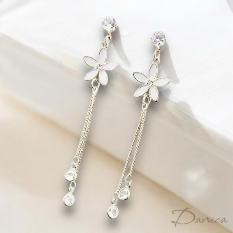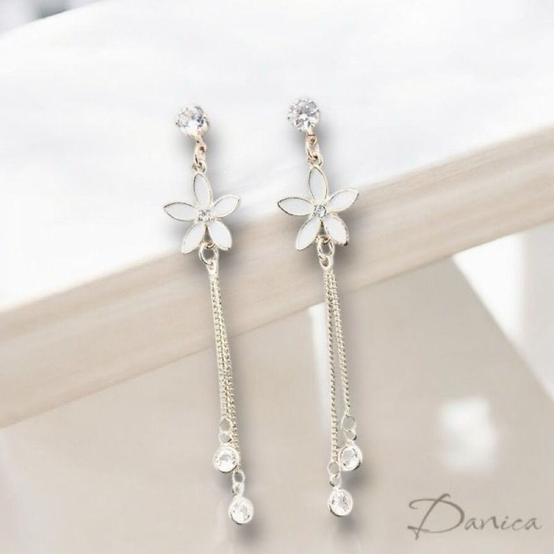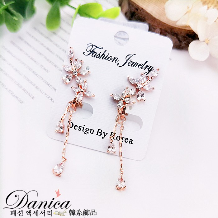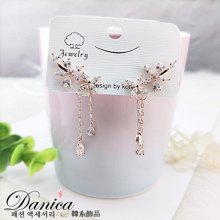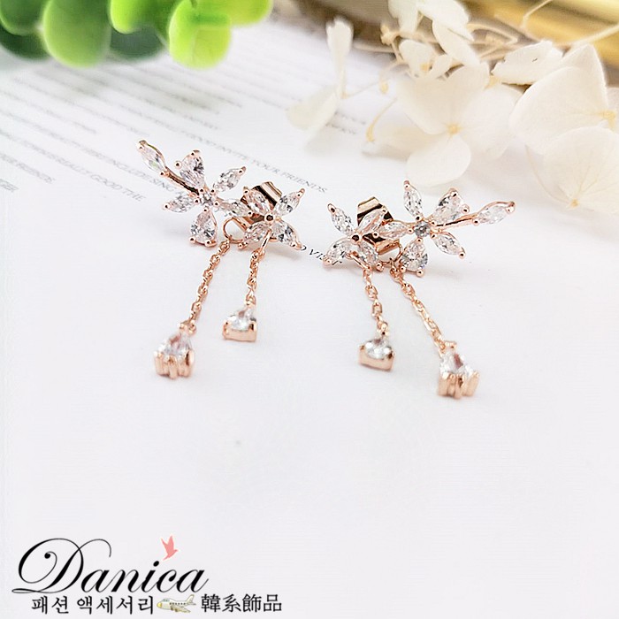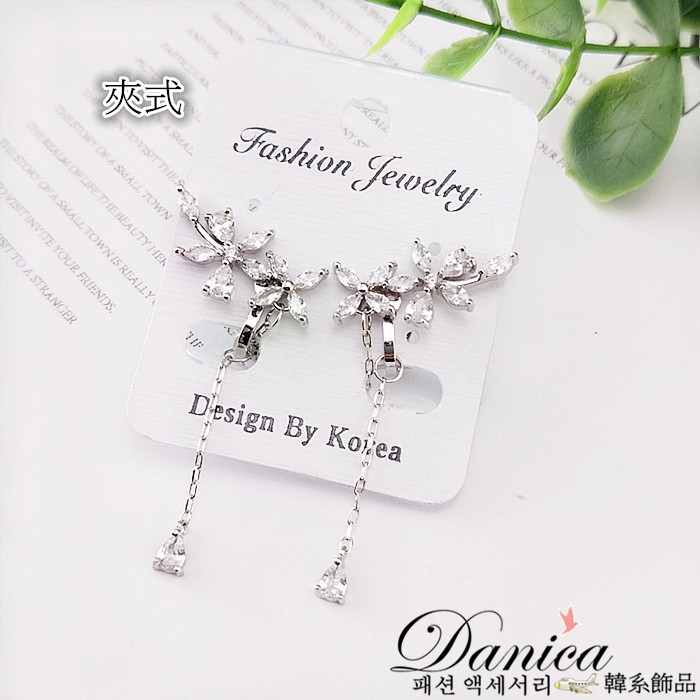 925銀針 夾式耳環 韓劇金秘書朴敏英花朵鋯石流蘇垂墜後掛耳環 K93043 批發價 Danica 韓系飾品 韓國連線玫瑰金針式|玫瑰金夾式(無耳洞配戴)|銀色針式|銀色夾式(無耳洞配戴)|長款玫瑰金針式|長款銀色針式Danica 韓系飾品 耳環