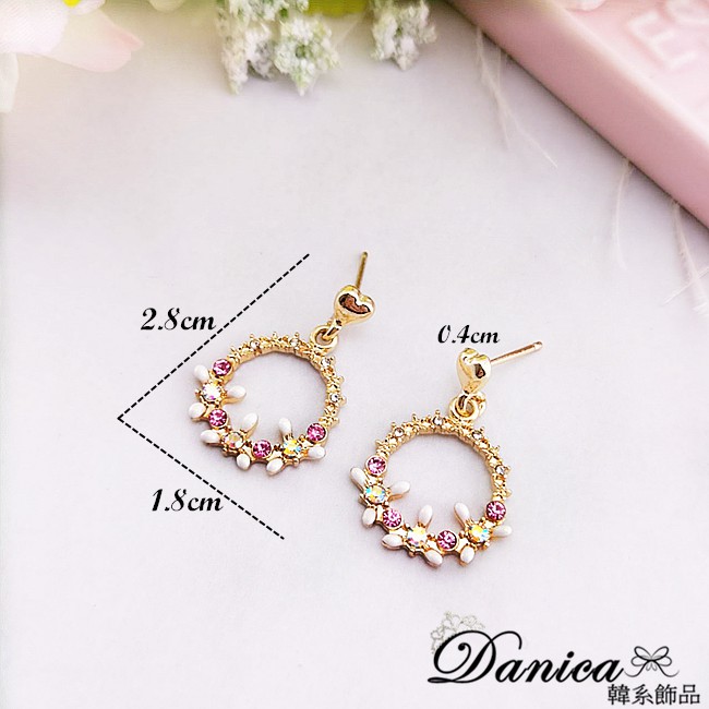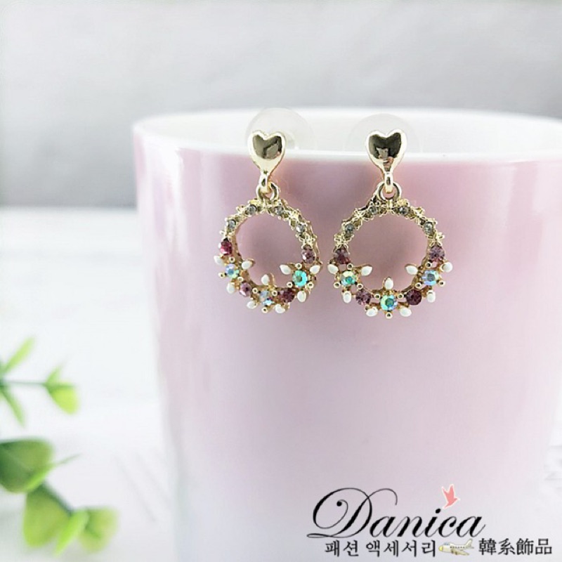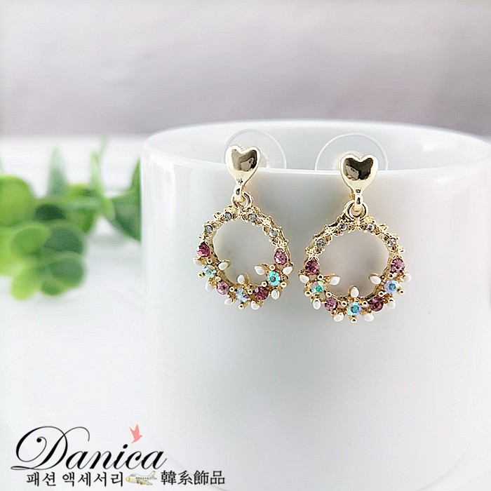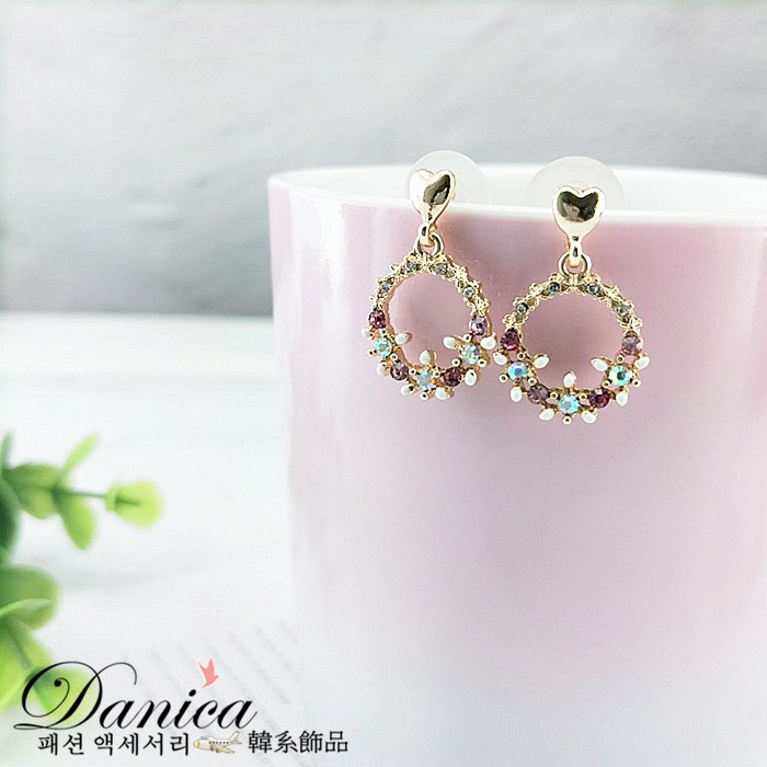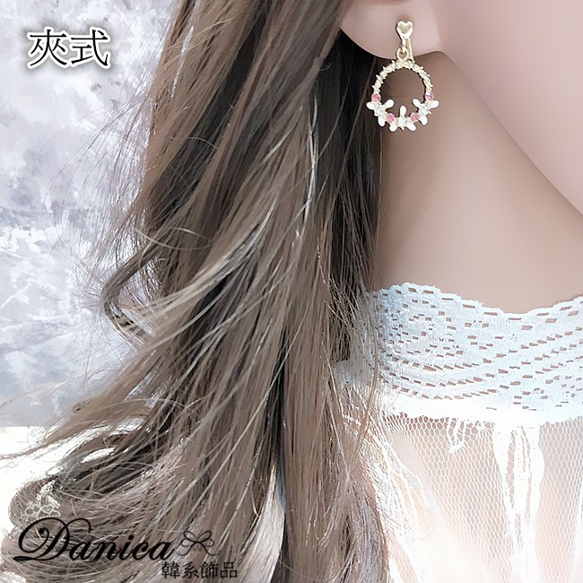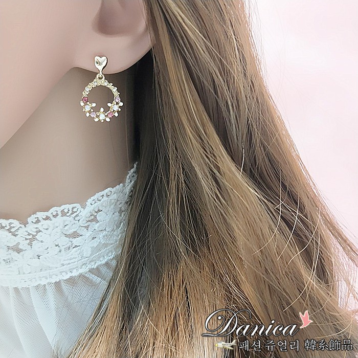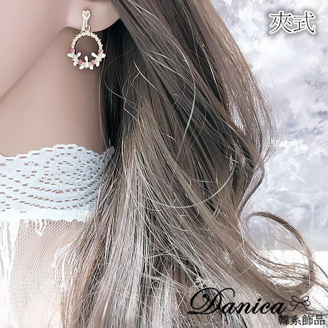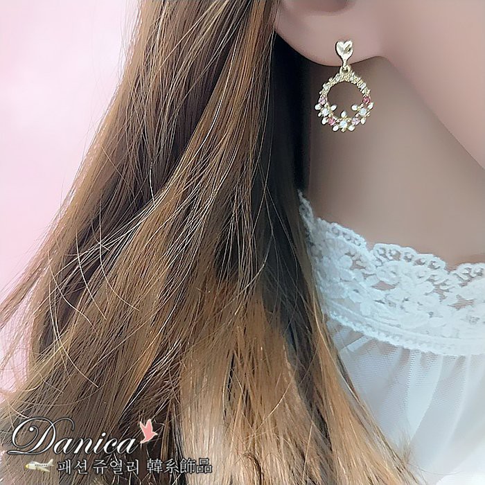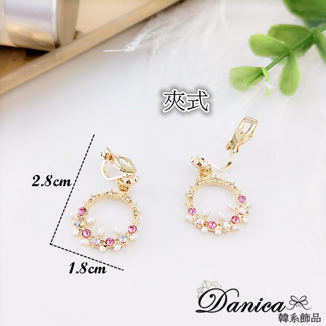 925銀針 夾式耳環 韓國氣質愛心花朵花圈水鑽耳環 K93067 批發價 Danica 韓系飾品 韓國連線如圖夾式(無耳洞配戴)|925銀針Danica 韓系飾品 耳環