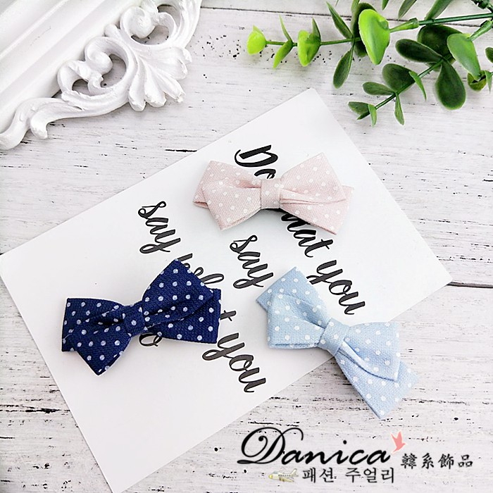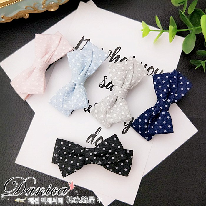 髮夾 韓國少女甜美百搭手作法式蝴蝶結玉水點點髮夾 鴨嘴夾 K7988 台灣出貨 Danica 韓系飾品 韓國連線1號粉色|2號淺藍|3號灰綠|4號深藍|5號黑色Hair Clips & Hair PinsDanica 韓系飾品 耳環