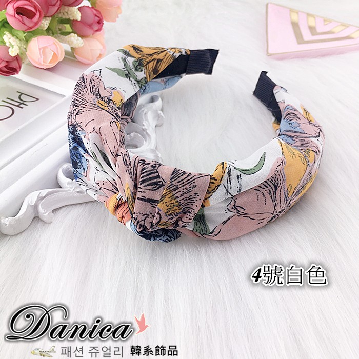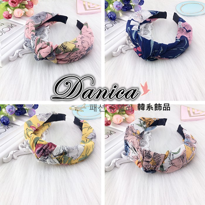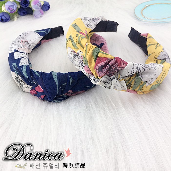 髮箍 韓國女神魅力氣質手作限量琦麗夢幻水墨花朵雪紡紗扭轉髮箍 K7952 批發價 Danica 韓系飾品 韓國連線1號粉色|2號深藍|3號芥末黃|4號白色HeadbandsDanica 韓系飾品 耳環