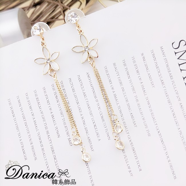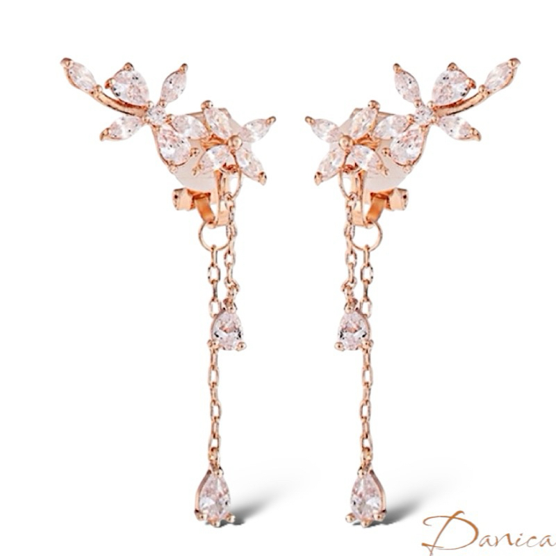 925銀針 夾式耳環 韓國女神氣質浪漫花朵水鑽流蘇耳環 K93742 台灣出貨 Danica 韓系飾品 韓國連線金色針式|金色夾式(無耳洞配戴)Danica 韓系飾品 耳環