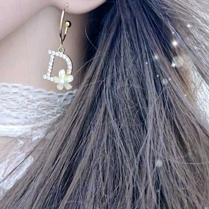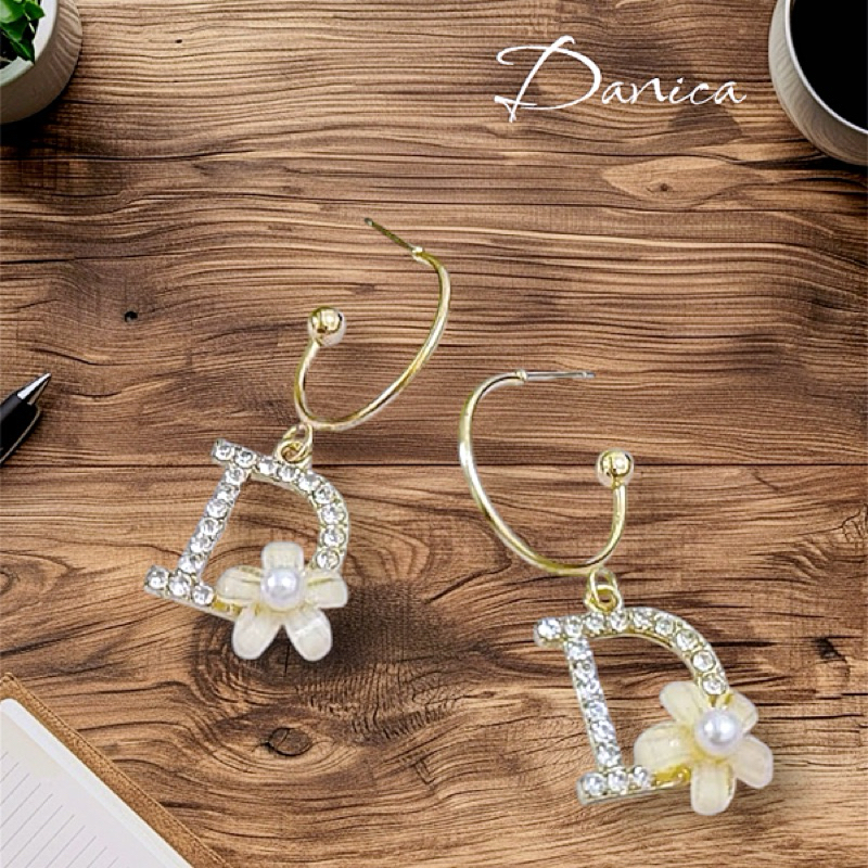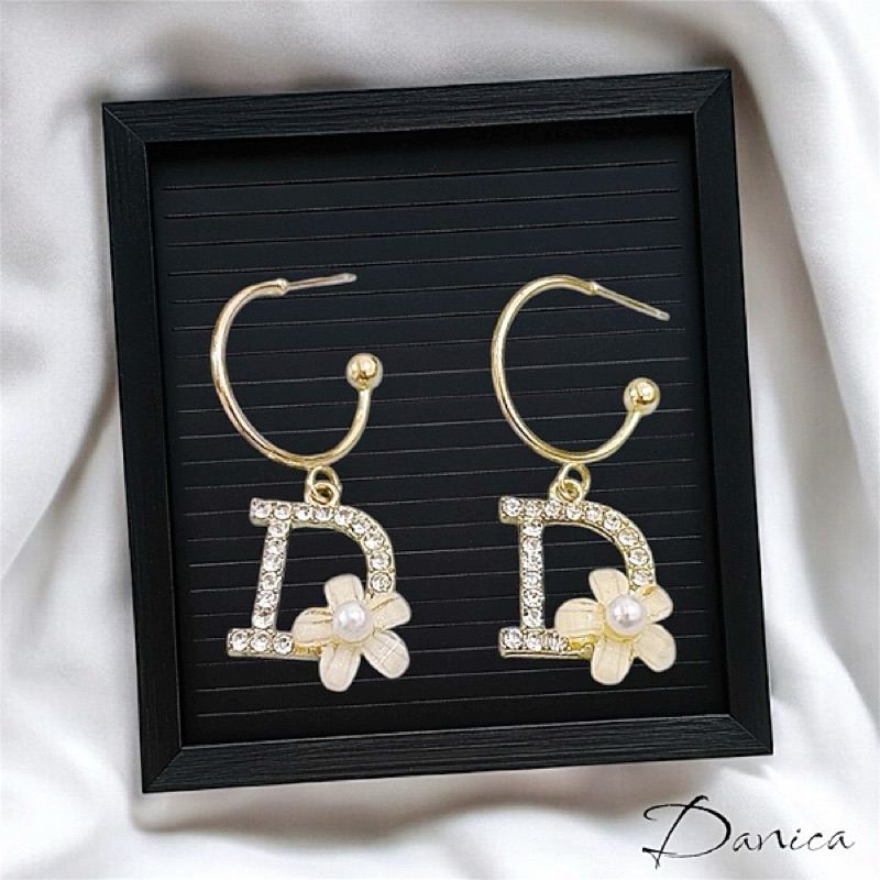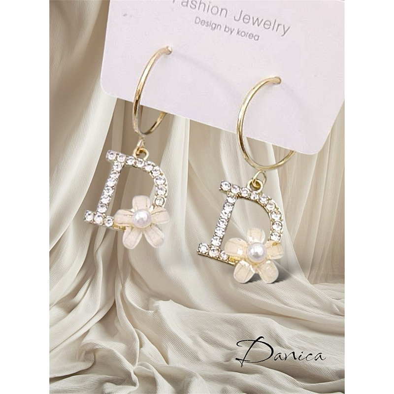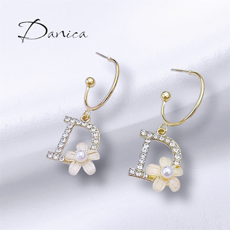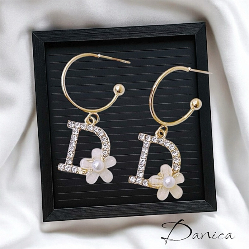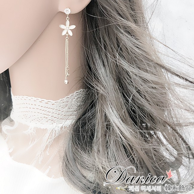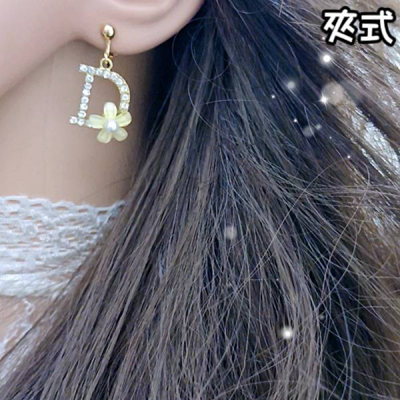 針式 夾式耳環 韓國女神氣質魅力大牌D字花朵水鑽垂墜耳環 K93796 台灣出貨 Danica 韓系飾品金色針式|金色夾式(無耳洞配戴)Danica 韓系飾品 耳環
