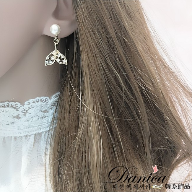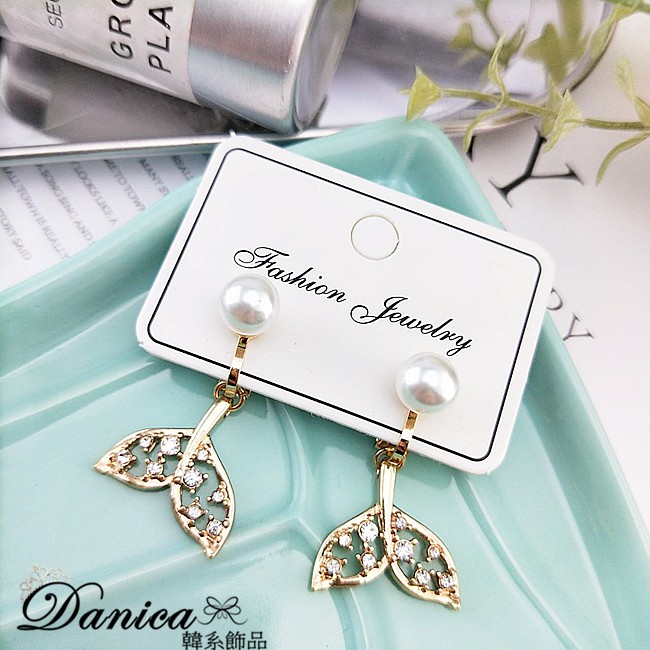 夾式耳環 韓國少女甜美氣質百搭珍珠美人魚魚尾水鑽夾式耳環 K93183 批發價 Danica 韓系飾品 韓國連線