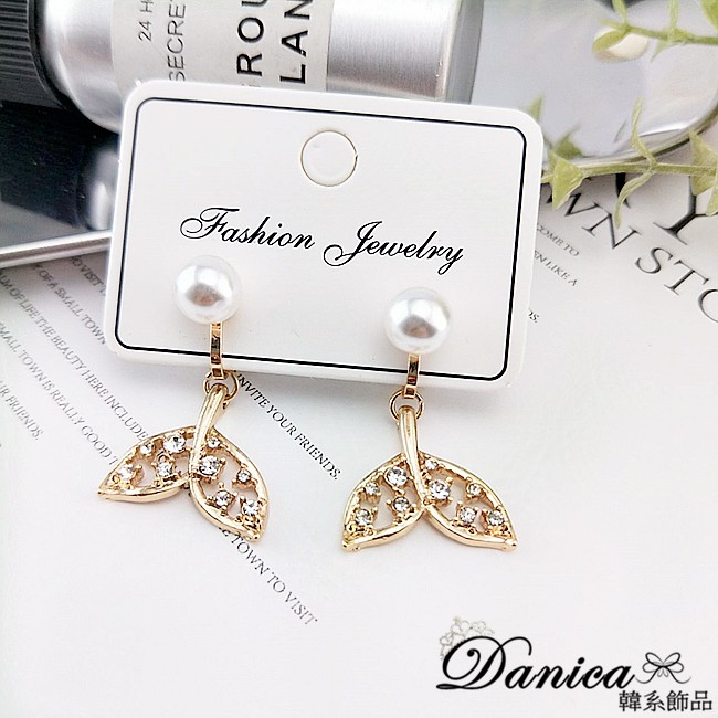 夾式耳環 韓國少女甜美氣質百搭珍珠美人魚魚尾水鑽夾式耳環 K93183 批發價 Danica 韓系飾品 韓國連線金色夾式(無耳洞配戴)Danica 韓系飾品 耳環