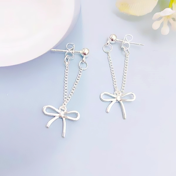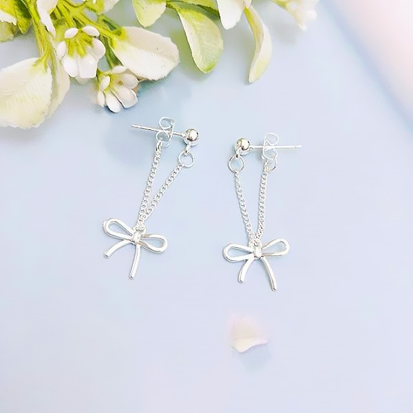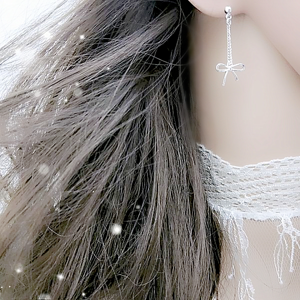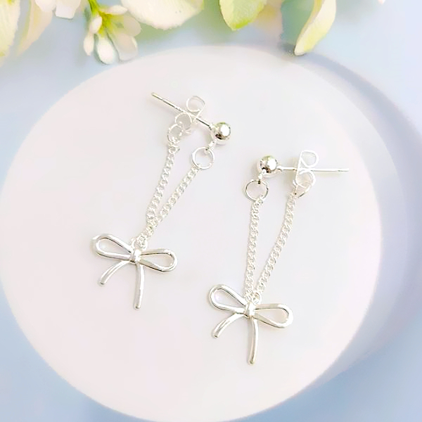 925銀針 夾式耳環 韓國少女氣質百搭簡約蝴蝶結後掛耳環 K94040 台灣出貨 Danica 韓系飾品 韓國連線銀色針式|銀色夾式(無耳洞配戴)Danica 韓系飾品 耳環
