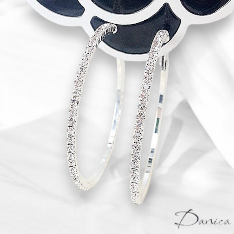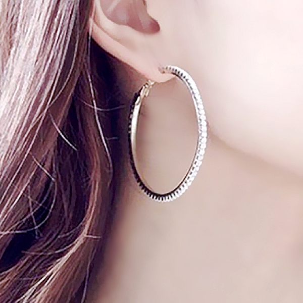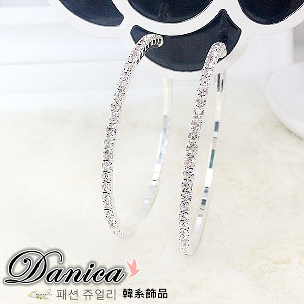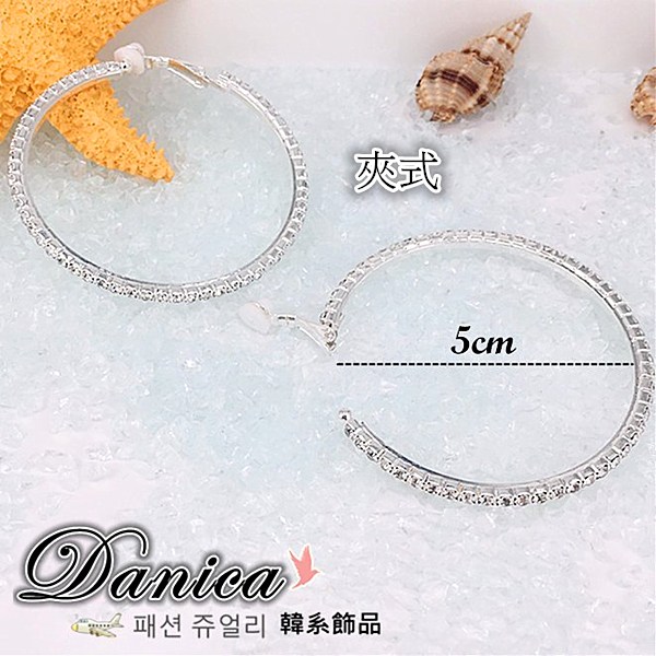 針式 夾式耳環 韓國女神氣質閃亮經典5CM大圓型抓鑲圓圈水鑽耳環 K90716 台灣出貨 Danica 韓系飾品如圖5cm夾式(無耳洞配戴)|如圖5cm針式Danica 韓系飾品 耳環