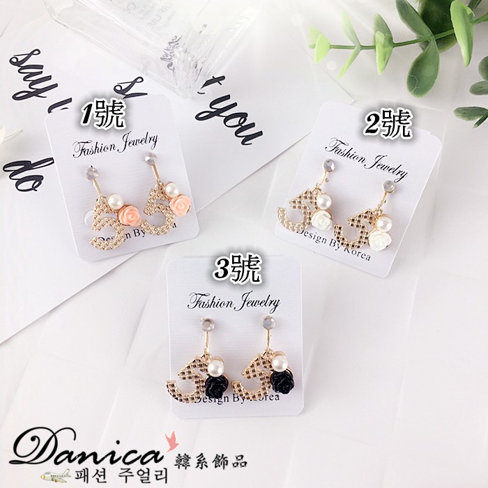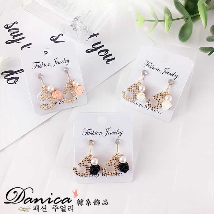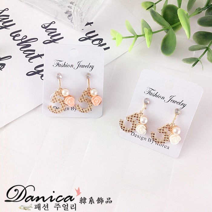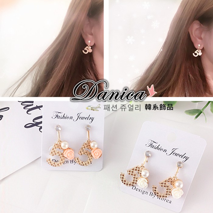夾式耳環 韓國少女氣質甜美小香風5字花朵珍珠水鑽耳環 K91577 台灣出貨 Danica 韓系飾品 韓國連線