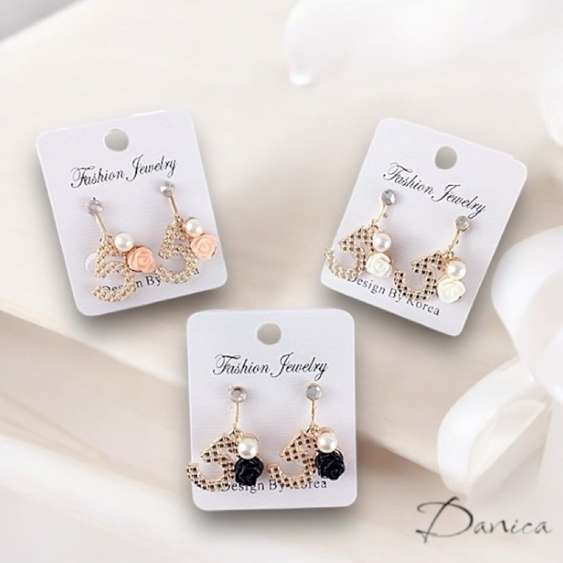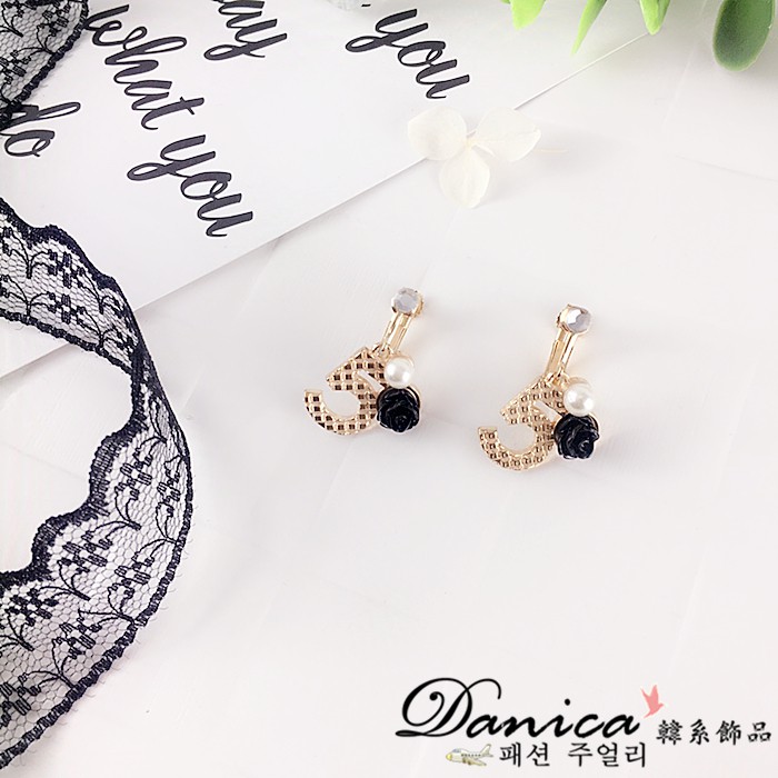 夾式耳環 韓國少女氣質甜美小香風5字花朵珍珠水鑽耳環 K91577 台灣出貨 Danica 韓系飾品 韓國連線1號粉橘花夾式(無耳洞配戴)|2號白花夾式(無耳洞配戴)|3號黑花夾式(無耳洞配戴)Danica 韓系飾品 耳環