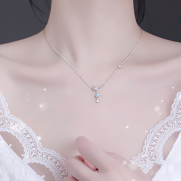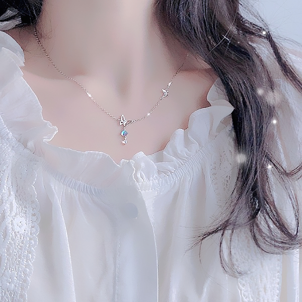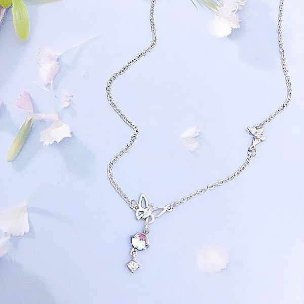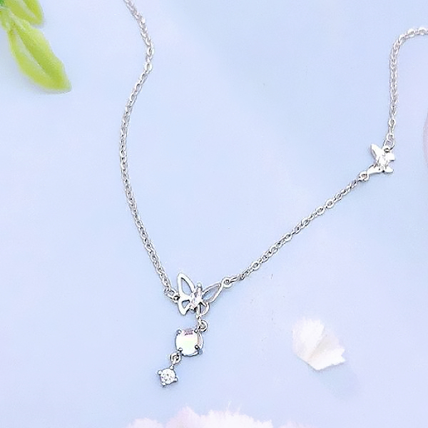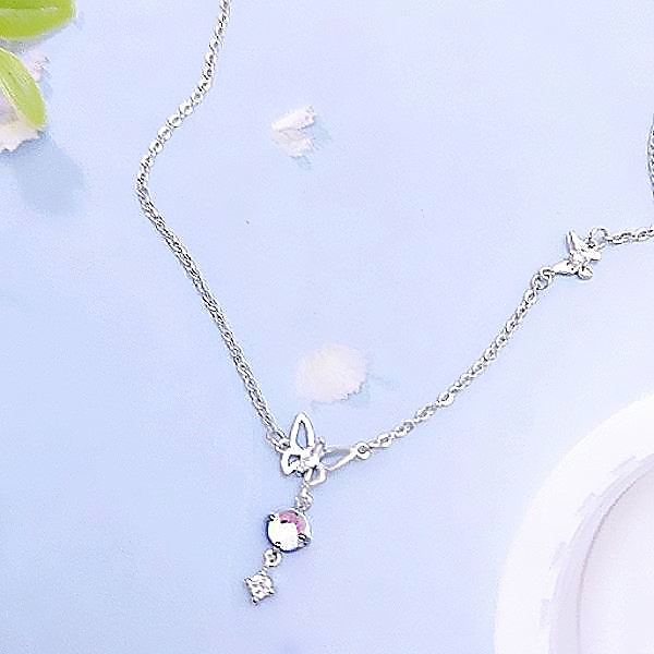 項鍊 韓國女神氣質微鑲極光簍空蝴蝶飛舞鋯石項鍊 鎖骨鍊 K2602 台灣出貨 Danica 韓系飾品 韓國連線銀色Danica 韓系飾品 耳環