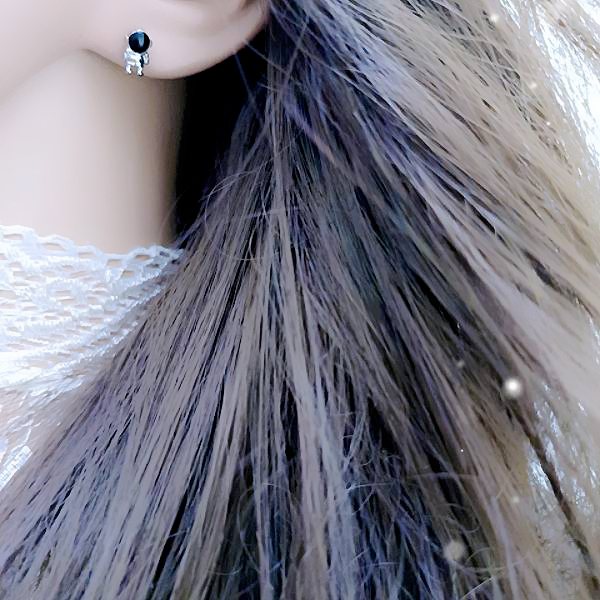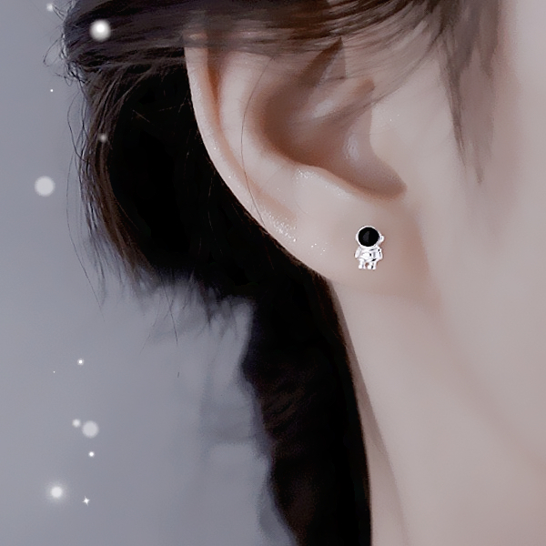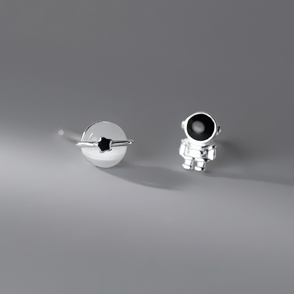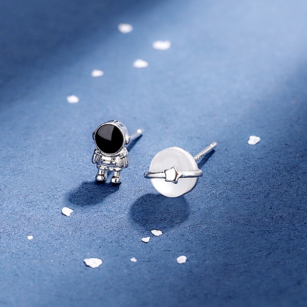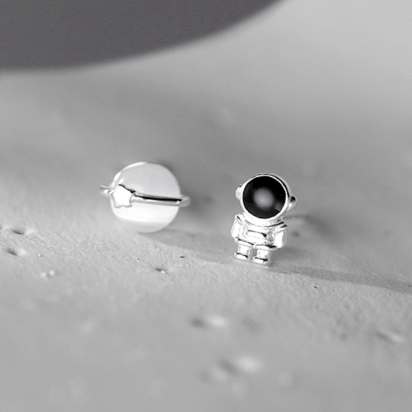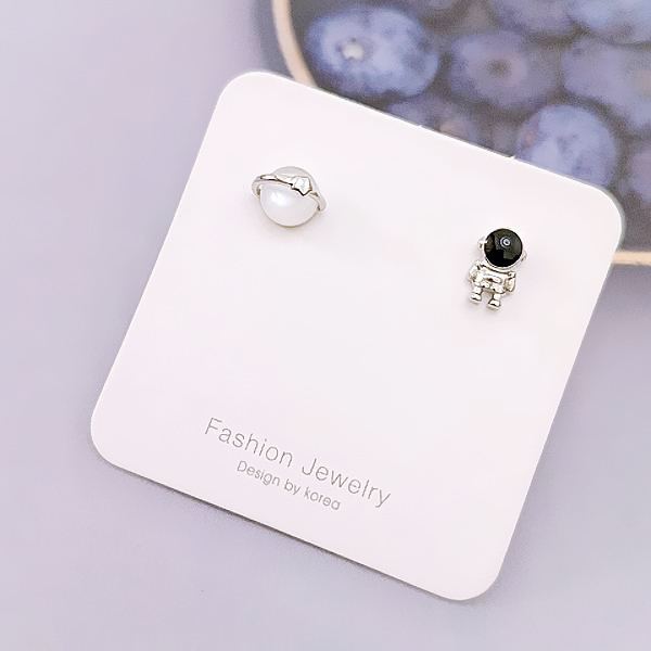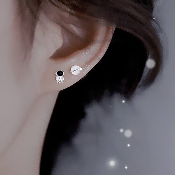 針式 夾式耳環 韓國少女萌系小巧宇宙太空人貓眼星球不對稱耳環 K94255 台灣出貨 Danica 韓系飾品 韓國連線如圖不對稱針式|如圖不對稱矽膠U型夾式(無耳洞配戴)Danica 韓系飾品 耳環