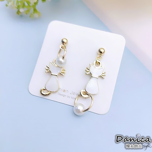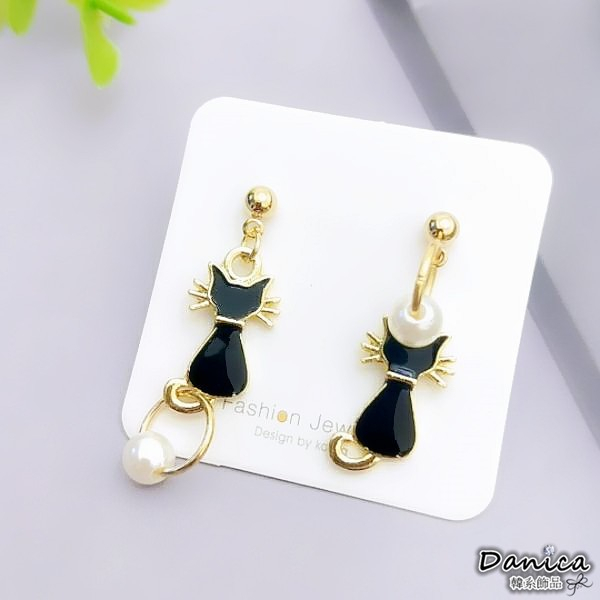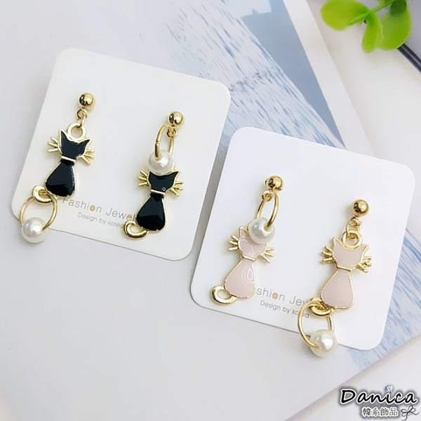 針式 夾式耳環 韓國少女甜美萌系貓咪背影珍珠垂墜耳環 不對稱耳環 K93942 台灣現出 Danica 韓系飾品白貓不對稱夾式(無耳洞配戴)|黑貓不對稱夾式(無耳洞配戴)|粉貓不對稱夾式(無耳洞配戴)|白貓不對稱針式|黑貓不對稱針式|粉貓不對稱針式Danica 韓系飾品 耳環