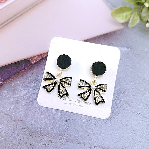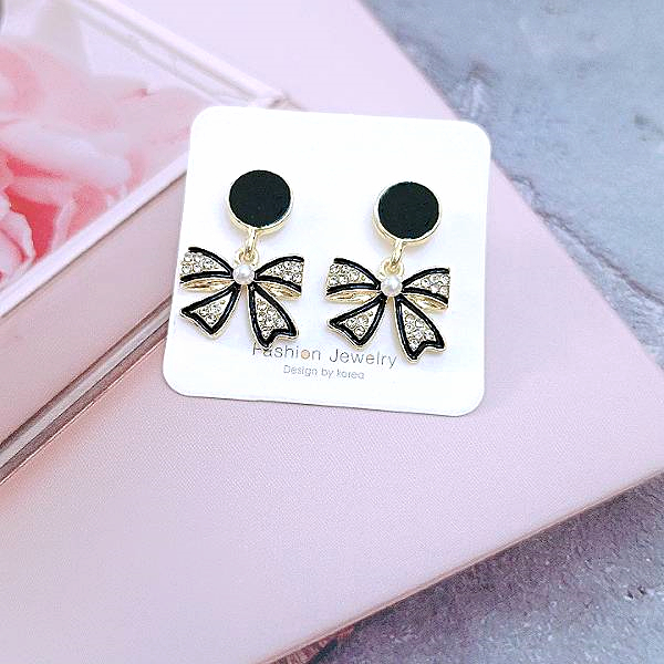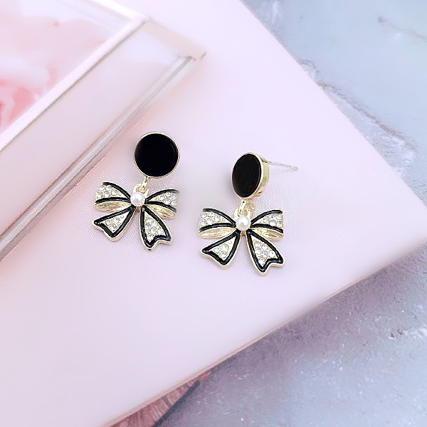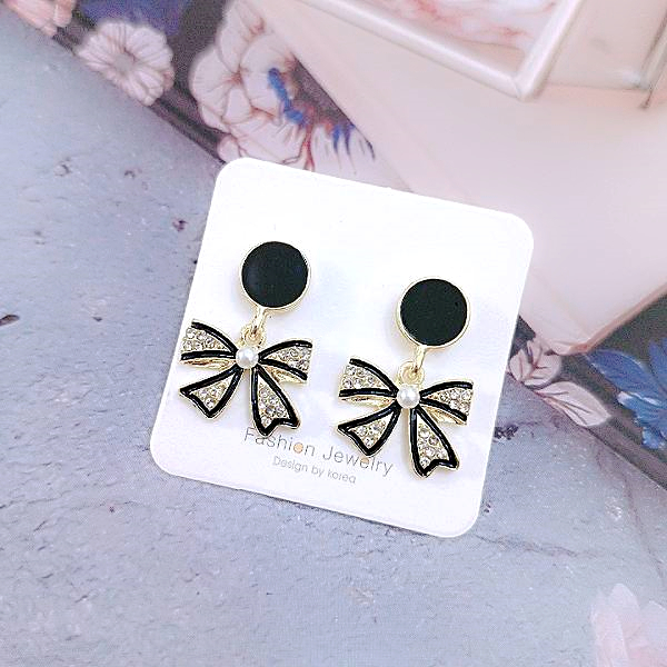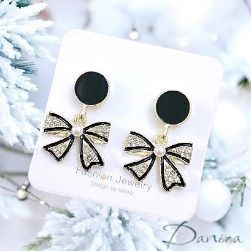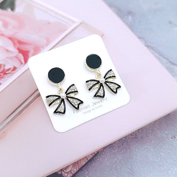 925銀針 韓國少女氣質甜美幾何公主蝴蝶結水鑽垂墜耳環 K94190 台灣出貨 Danica 韓系飾品 韓國連線如圖針式Danica 韓系飾品 耳環