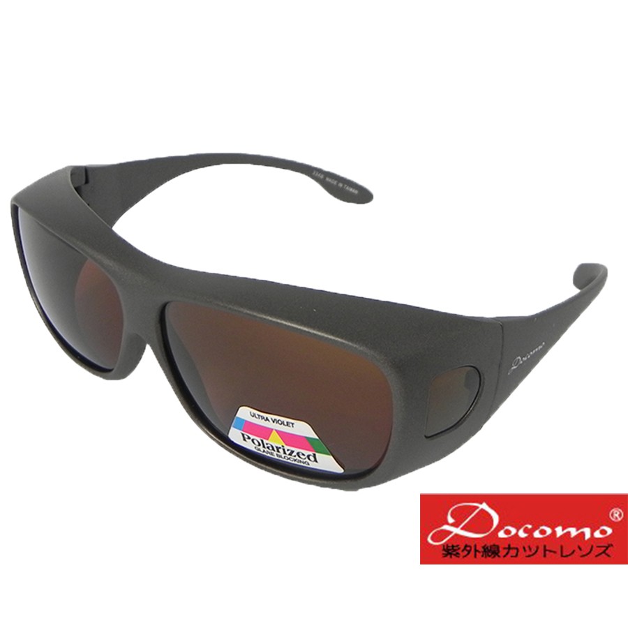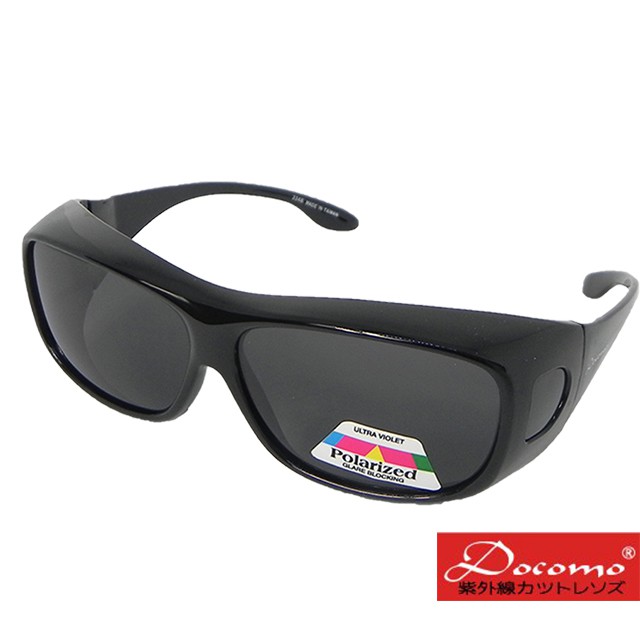 Docomo頂級包覆式 加大型可包覆近視眼鏡於內 採用頂級Polarized偏光鏡片 4種顏色可選亮面黑色框灰黑色鏡片|霧面黑色框灰黑色鏡片|豹紋框茶色鏡片|珍珠茶色框茶色鏡片SunglassesDocomo眼鏡館