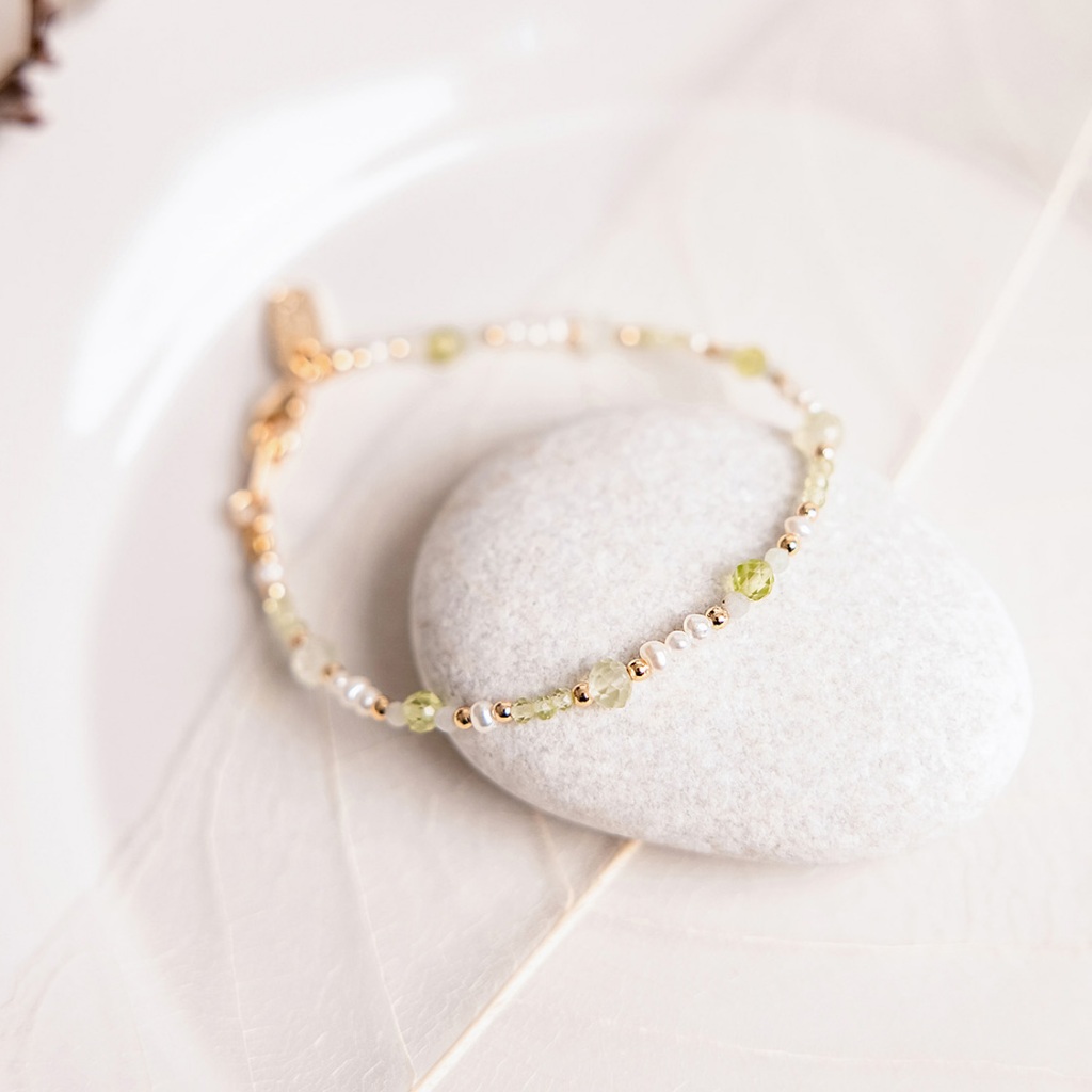 【Ficelle輕珠寶】八月誕生石 • 洋桔梗 • 不變的愛|橄欖石 葡萄石 珍珠 緬甸玉 誕生石 手鍊XS – 適合約13cm的手圍|S – 適合約14cm的手圍|M – 適合約15cm的手圍|L – 適合約16cm的手圍|XL – 適合約17cm的手圍|客製 – 手圍超過18cm以上需備註Ficelle手作輕珠寶
