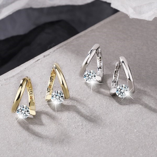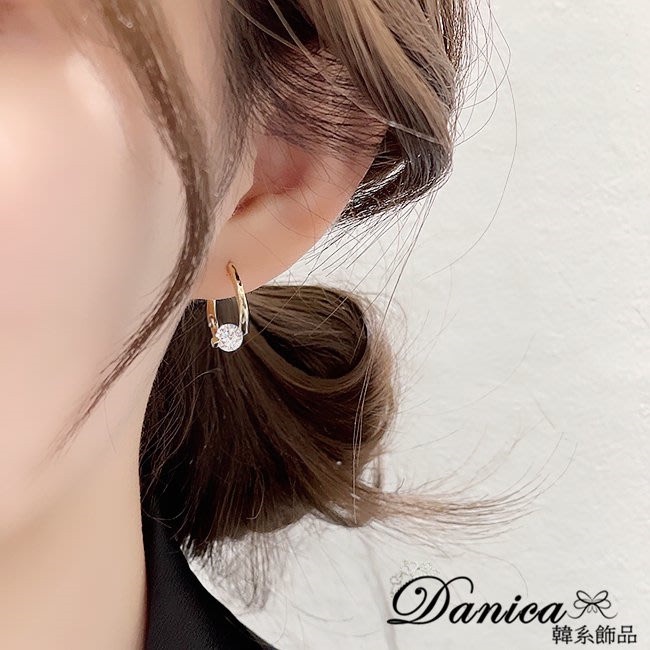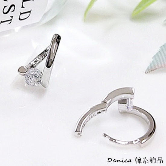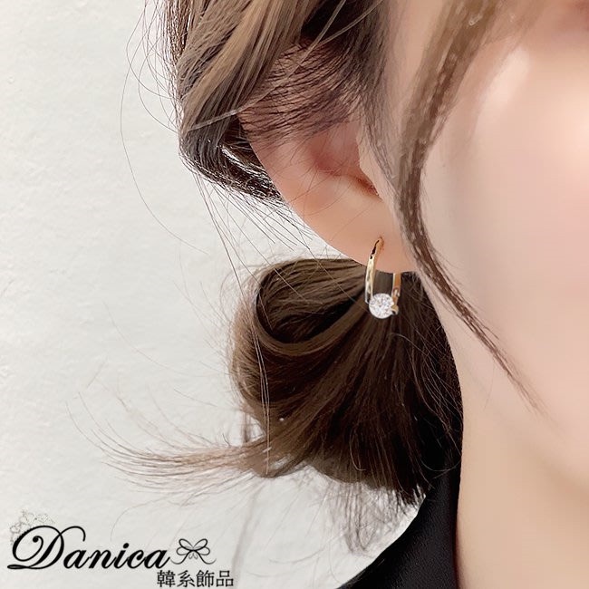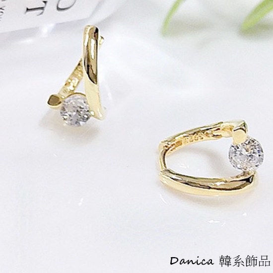 耳扣 針式 韓國女神時尚氣質百搭不敗款簡約單鑽鋯石易扣耳環 K93879 台灣出貨 Danica 韓系飾品 韓國連線金色耳扣針式|銀色耳扣針式Danica 韓系飾品 耳環