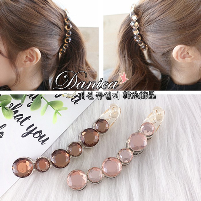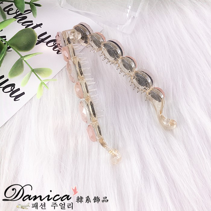 香蕉夾 馬尾夾 韓國連線女神小香風優雅閃亮百搭寶石香蕉夾 K7966 台灣出貨 Danica 韓系飾品1號威士忌|2號水蜜桃|3號黑底銀灰|4號黑底水蜜桃Hair Clips & Hair PinsDanica 韓系飾品 耳環
