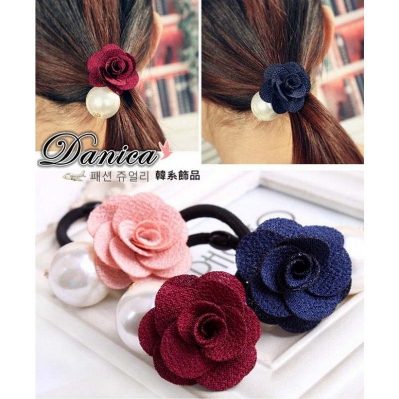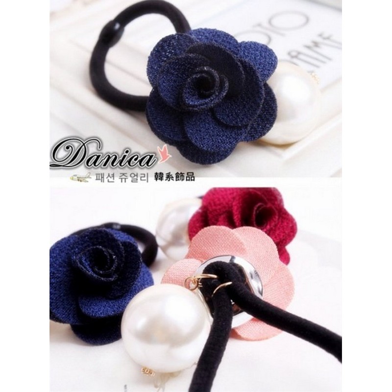 髮束 韓國女神熱賣氣質小香風玫瑰花珍珠吊飾髮束K7276 單個價 批發價 Danica 韓系飾品 韓國連線1.粉紅|2.深藍|3.酒紅Hair Ties, Ribbons & ScrunchiesDanica 韓系飾品 耳環