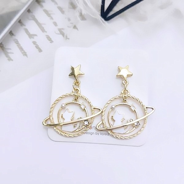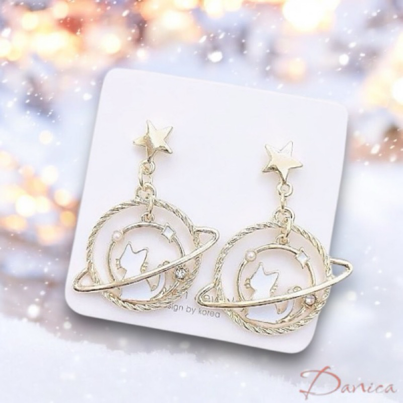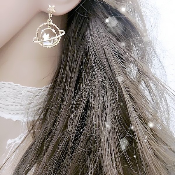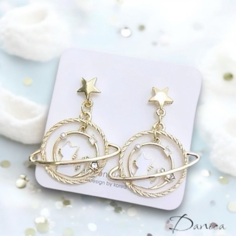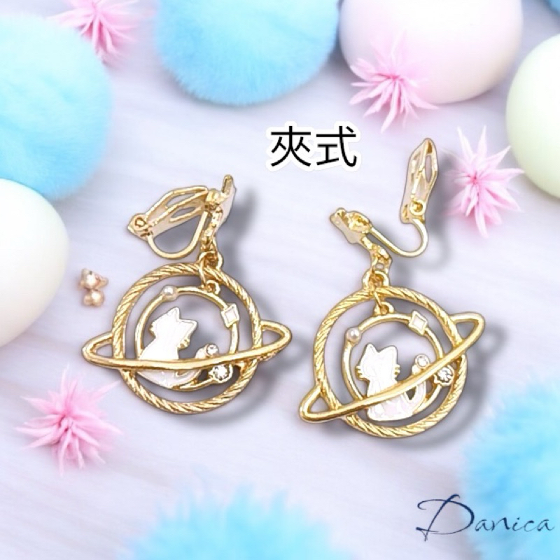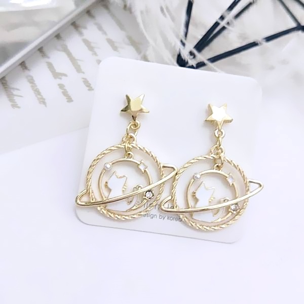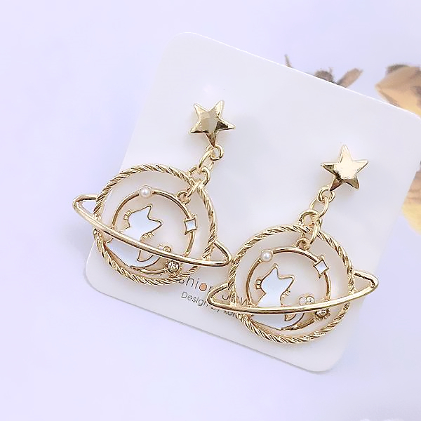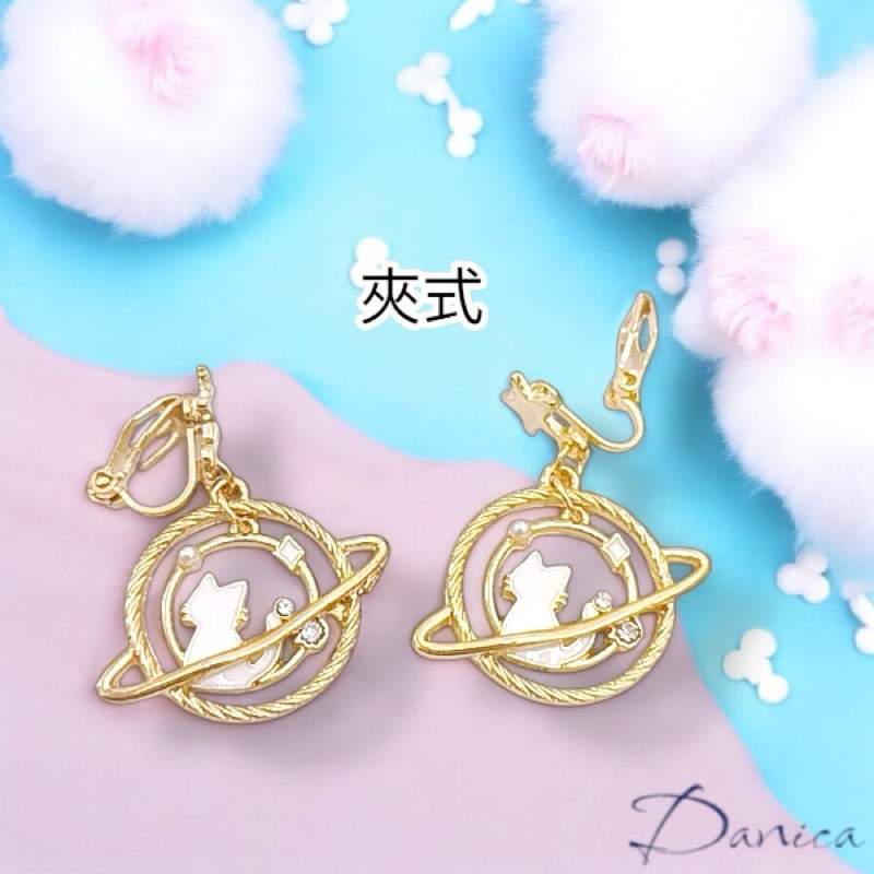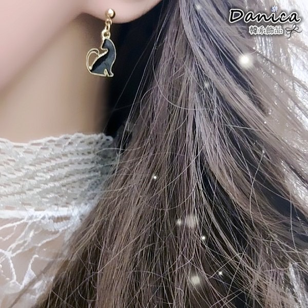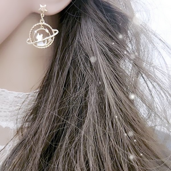 925銀針 夾式耳環 韓國少女氣質甜美金屬感宇宙星球貓咪垂墜耳環 K93979 台灣出貨 Danica韓系飾品 韓如圖針式|如圖夾式(無耳洞配戴)Danica 韓系飾品 耳環