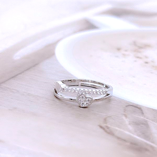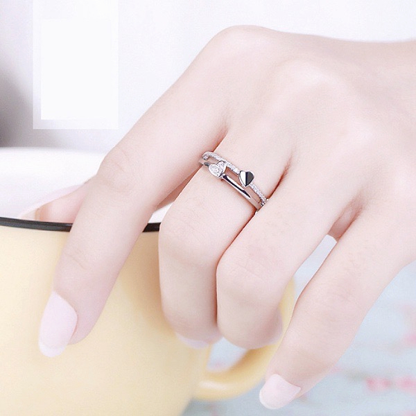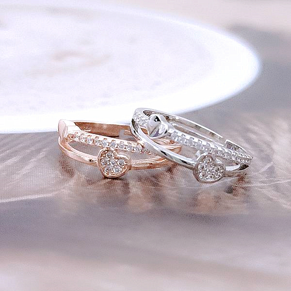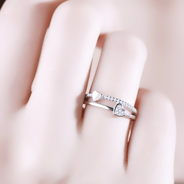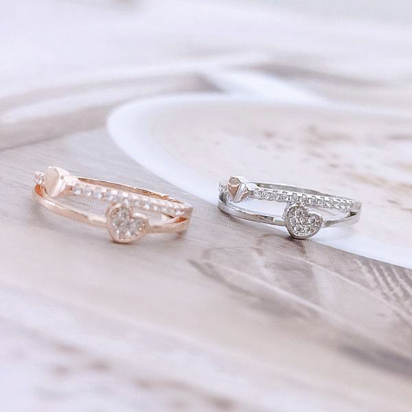 戒指 韓國女神氣質浪漫微鑲心心相印愛心鋯石開口戒指 K5295 台灣出貨 Danica 韓系飾品 韓國連線銀色|玫瑰金Danica 韓系飾品 耳環