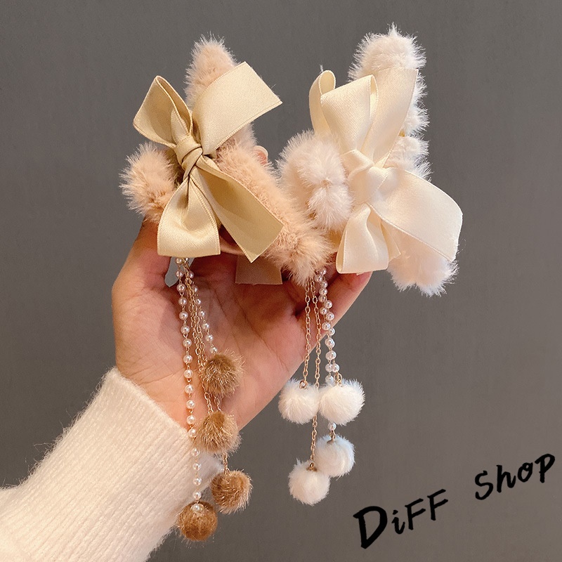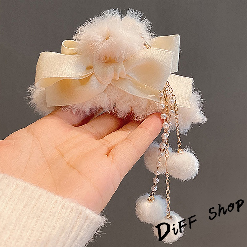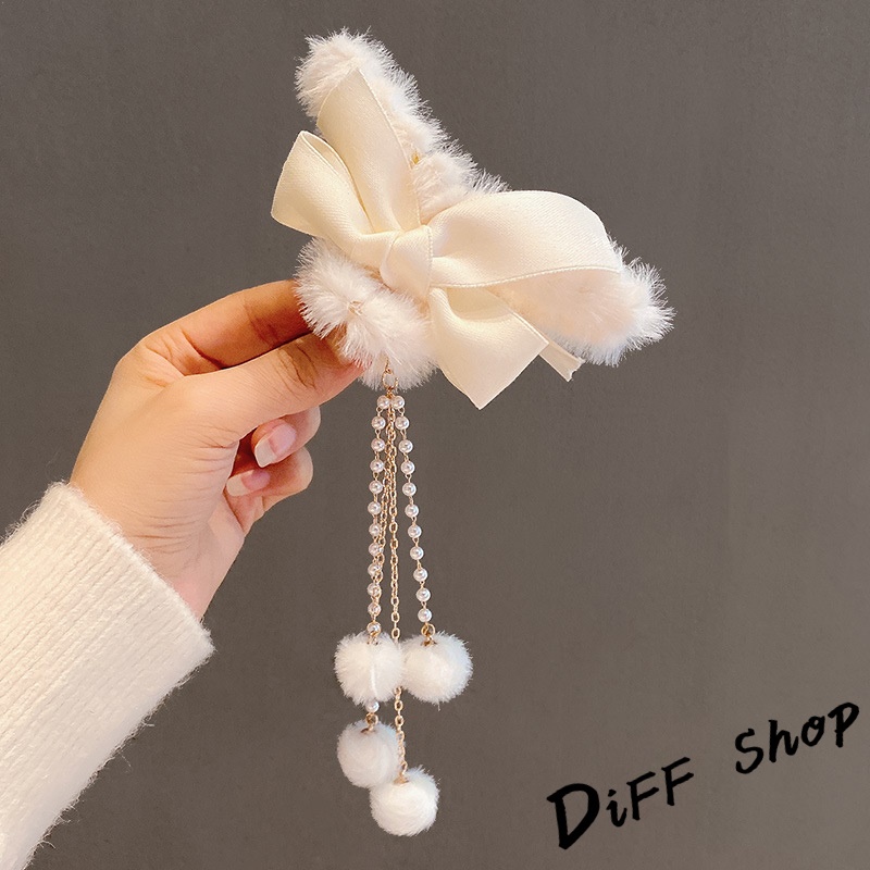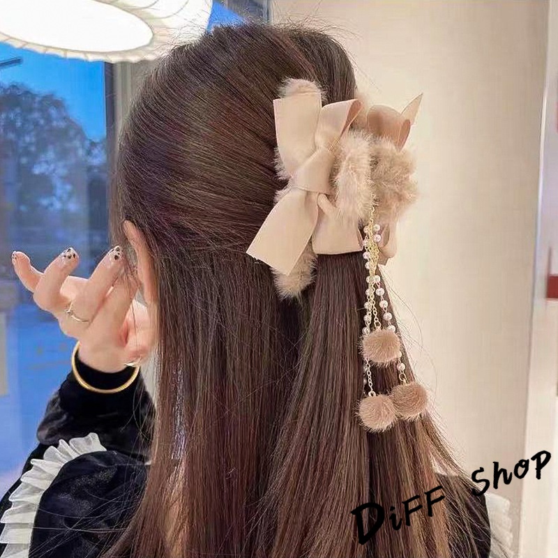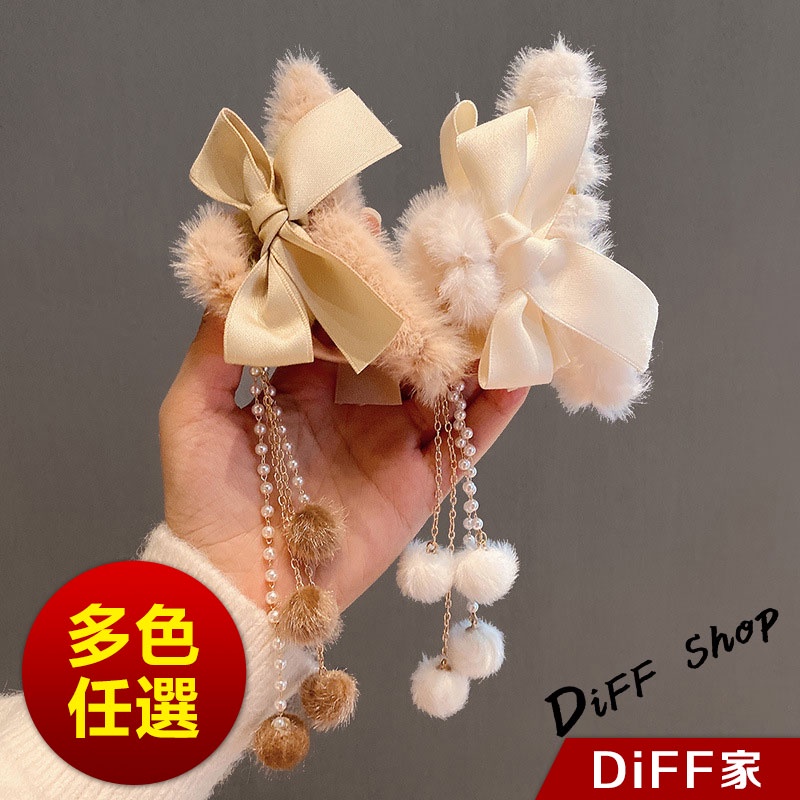 【DIFF】韓版毛絨蝴蝶結流蘇髮夾 髮夾 洗澡髮夾 髮夾 髮飾 頭飾【N78】【N78】毛絨蝴蝶結流蘇髮夾-白色Hair Clips & Hair PinsDiFF shop