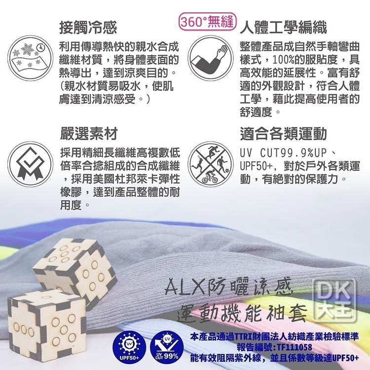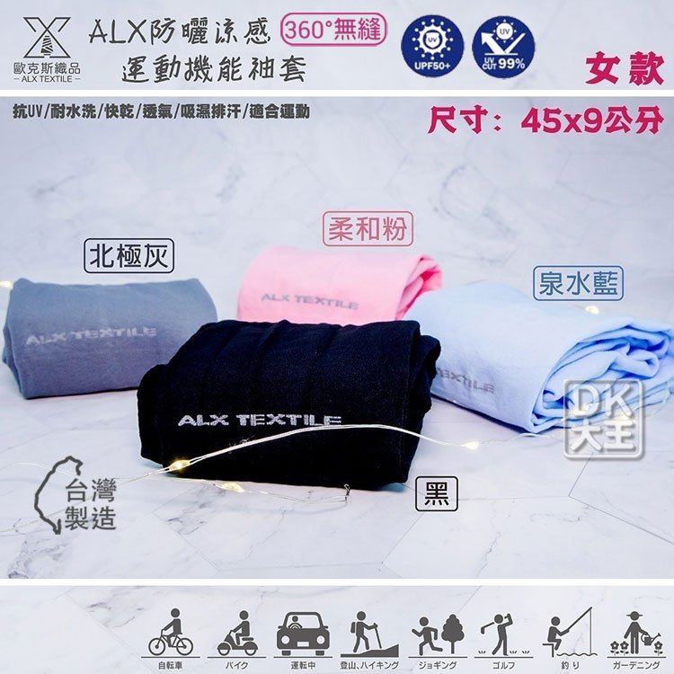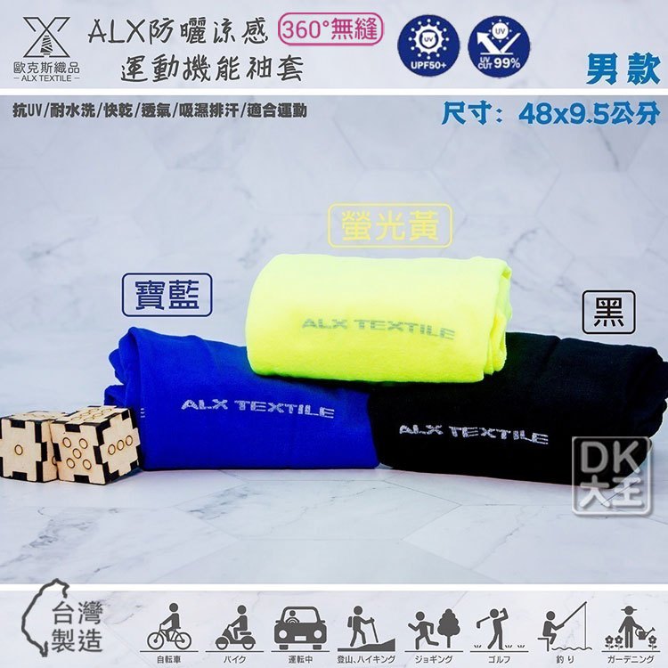 台灣製 UPF50+ 防曬涼感袖套 運動機能袖套 ALX水洗強度6倍 360度無縫袖套 UV CUT99%【DK大王】男生-螢光黃/1雙|男生-寶藍/1雙|男生-黑色/1雙|女生-粉色/1雙|女生-灰色/1雙|女生-藍色/1雙|女生-黑色/1雙DK大王旗艦店