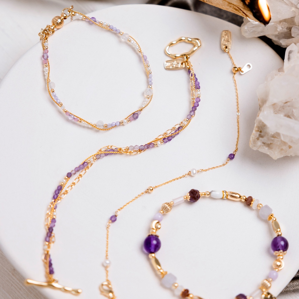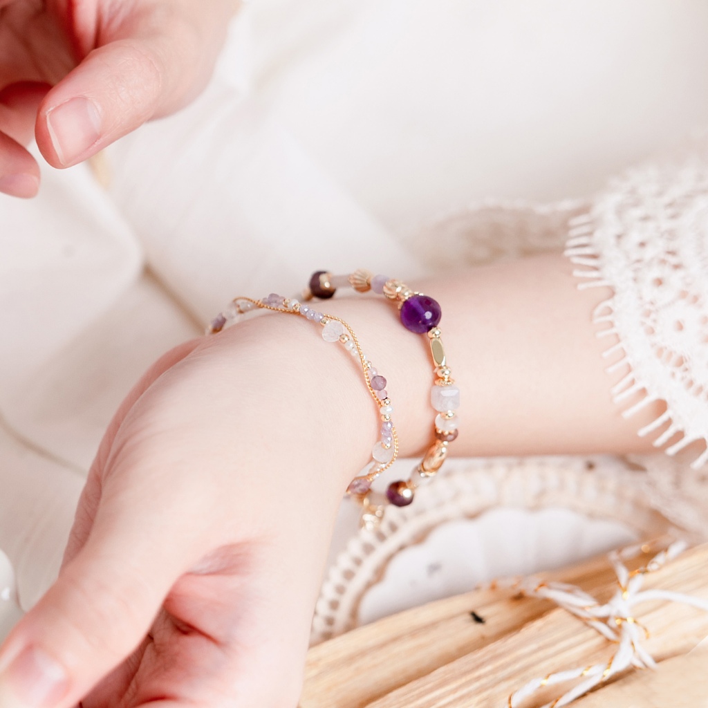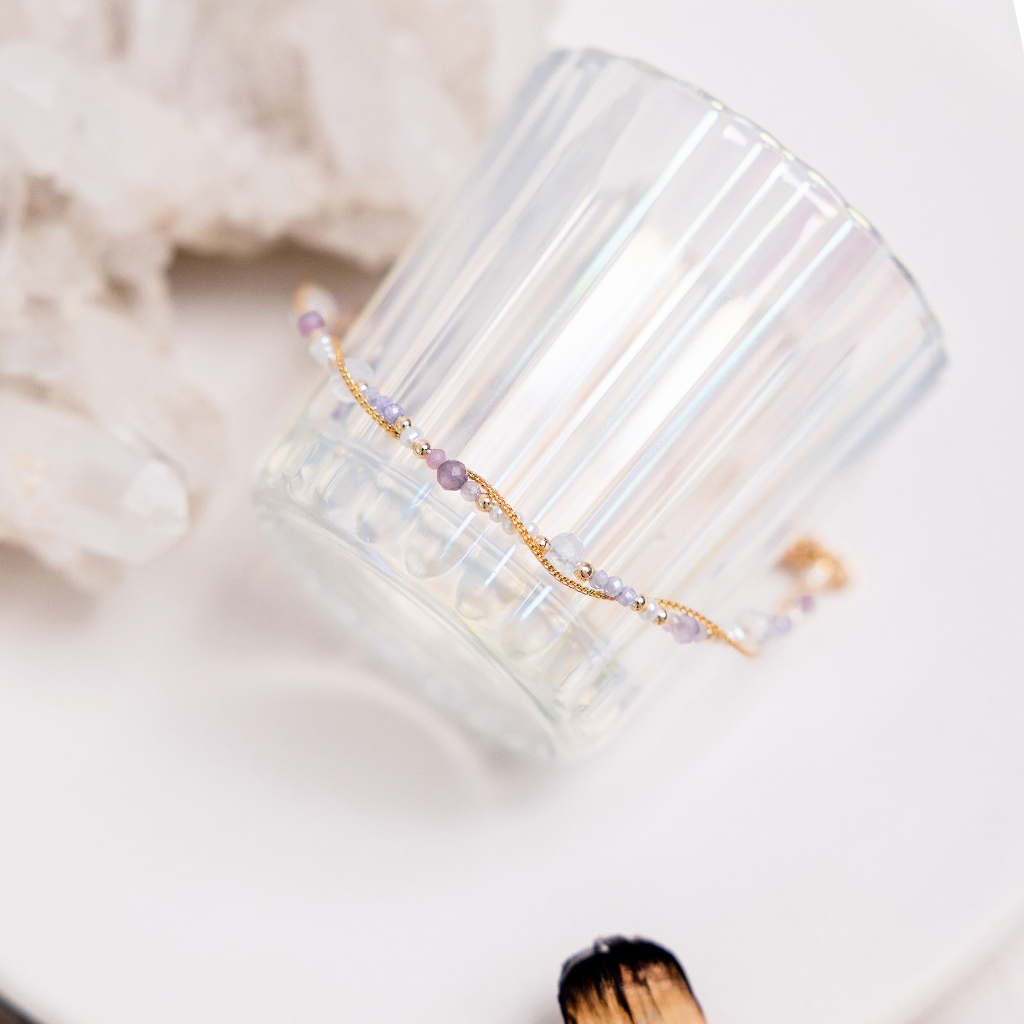 【Ficelle輕珠寶】二月誕生石 • 飛燕草 • 給你幸福|紫水晶 月光石 珍珠 粉貓眼石 黃銅鍍18K金 磁扣 手鍊13cm(兒童尺寸請慎選)|14cm|15cm|16cm|17cm|18-25cm,尺寸請填於備註Ficelle手作輕珠寶