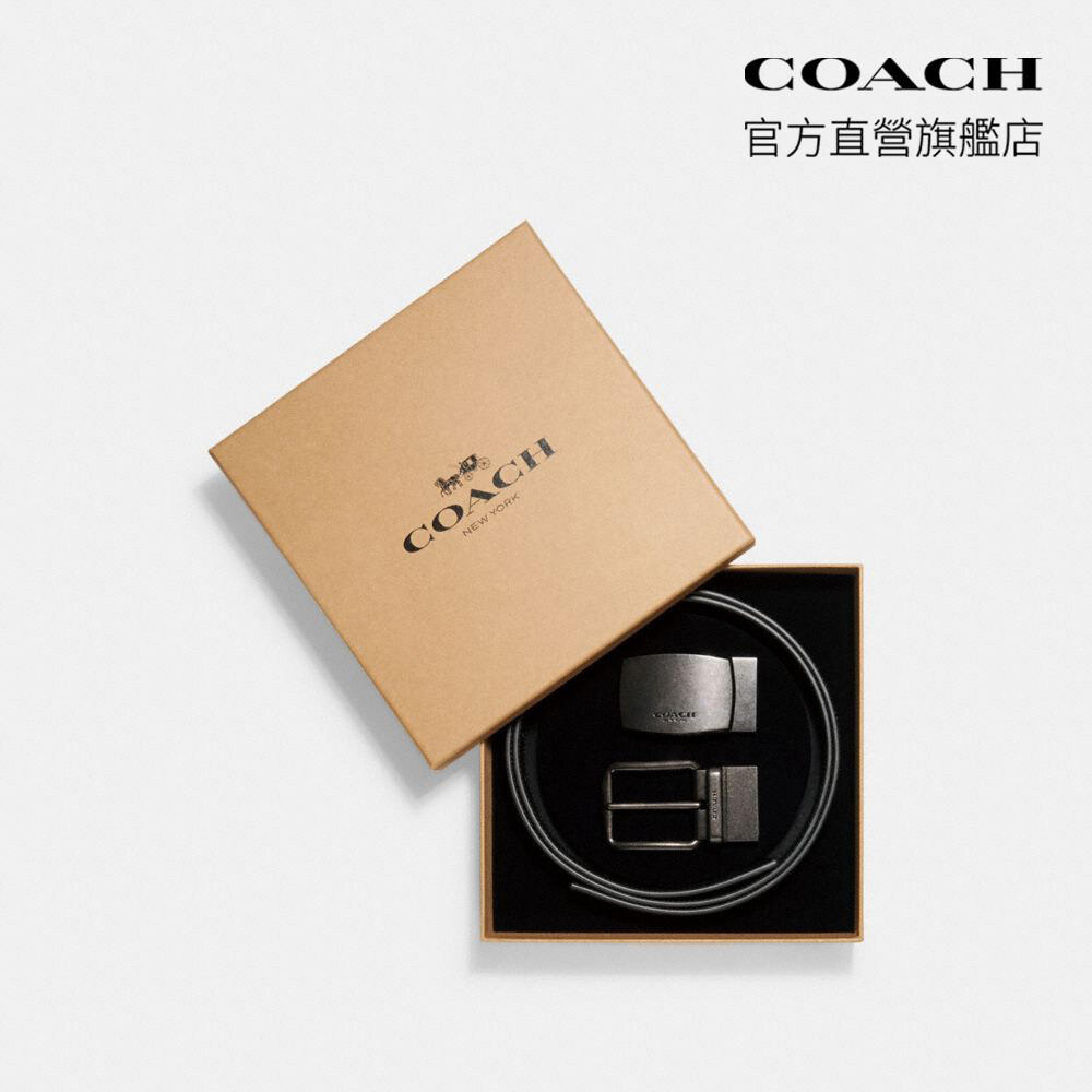 【COACH】HARNESS針扣可裁剪雙面38MM皮帶禮盒-黑色(CQ067)|官方直營黑色COACH官方旗艦店