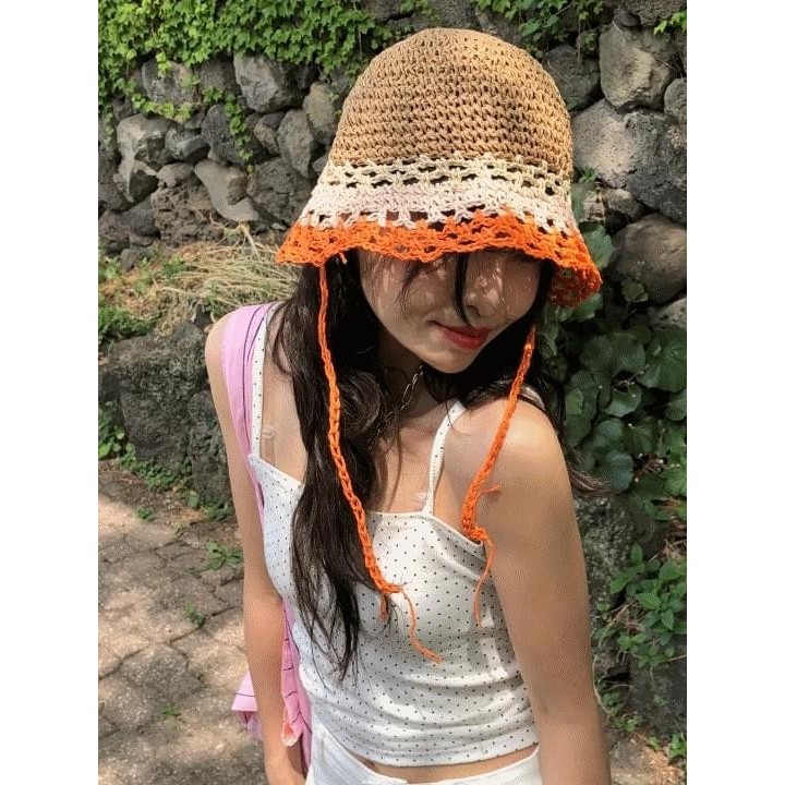 Codibook|韓國 MANDARINE TREE 彩虹拉菲草水桶帽 2色[預購]帽子 漁夫帽 女裝橘色,FREE|紫色,FREECodibook 韓國女裝購物平台
