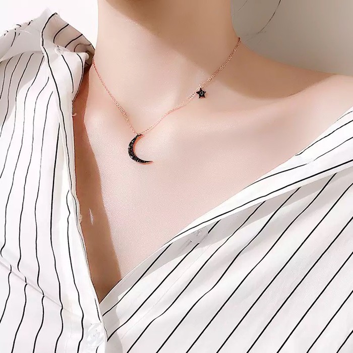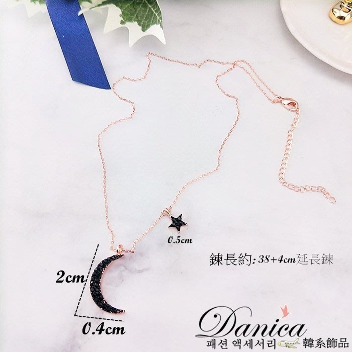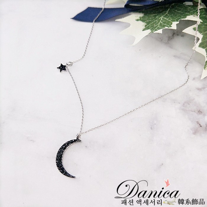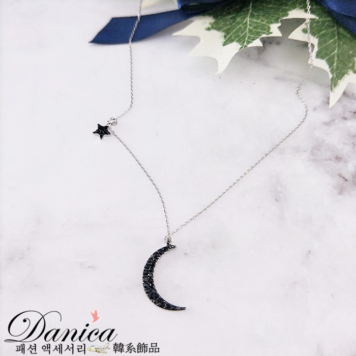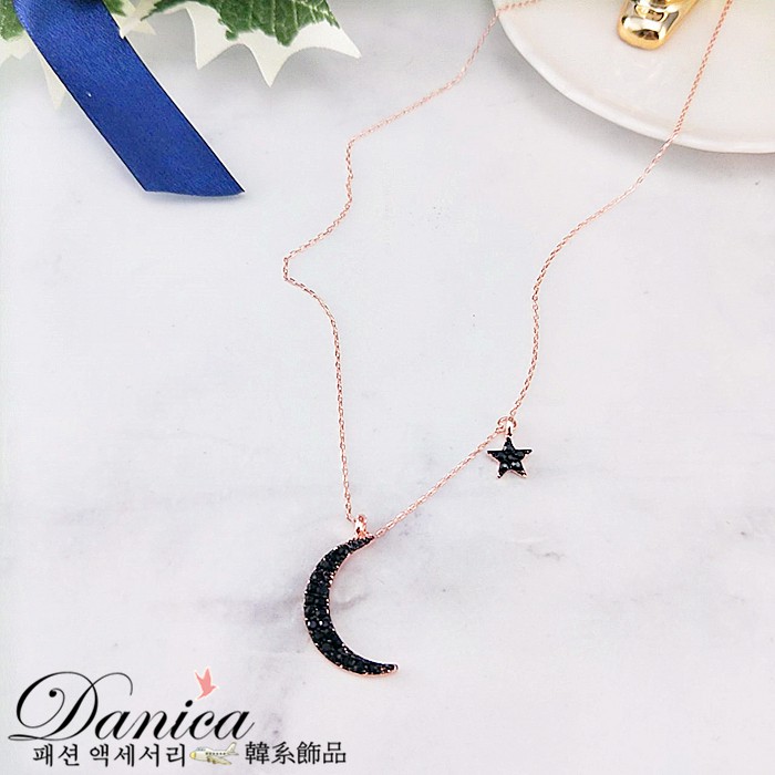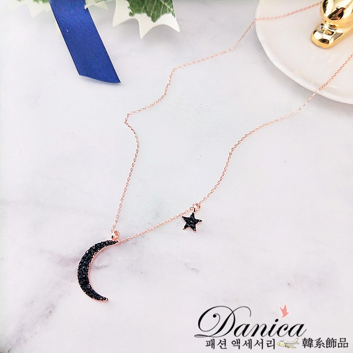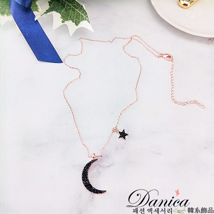 項鍊 韓國氣質浪漫星星月亮水鑽項鍊 鎖骨鍊 K2554 批發價 Danica 韓系飾品 韓國連線玫瑰金黑鑽|銀色黑鑽Danica 韓系飾品 耳環