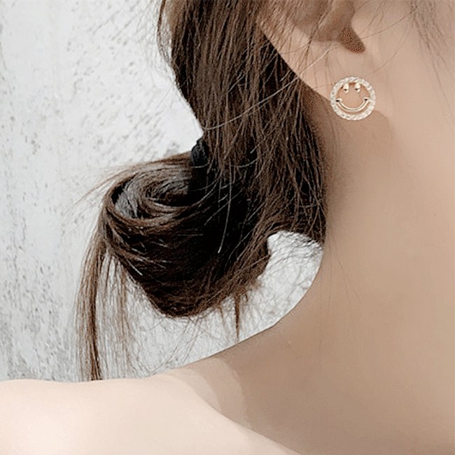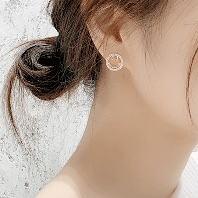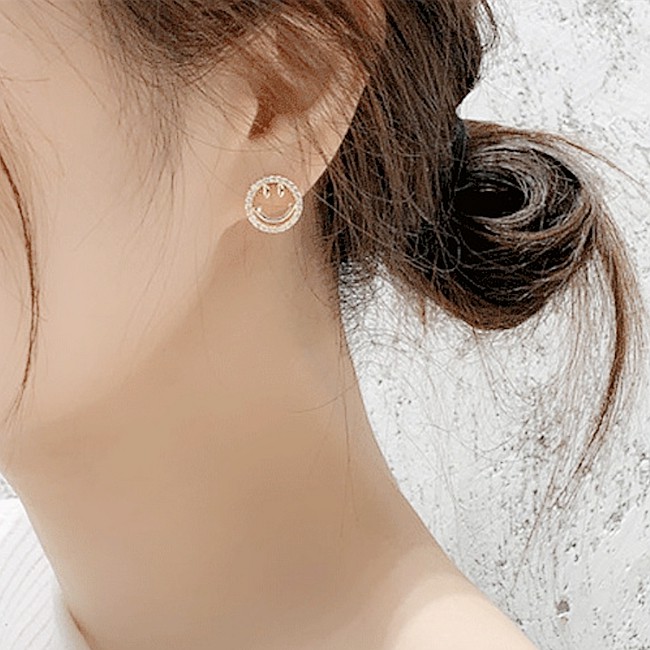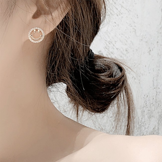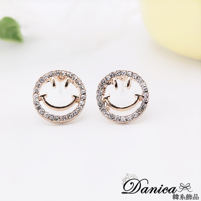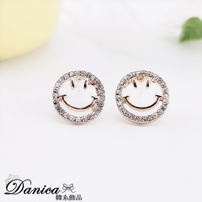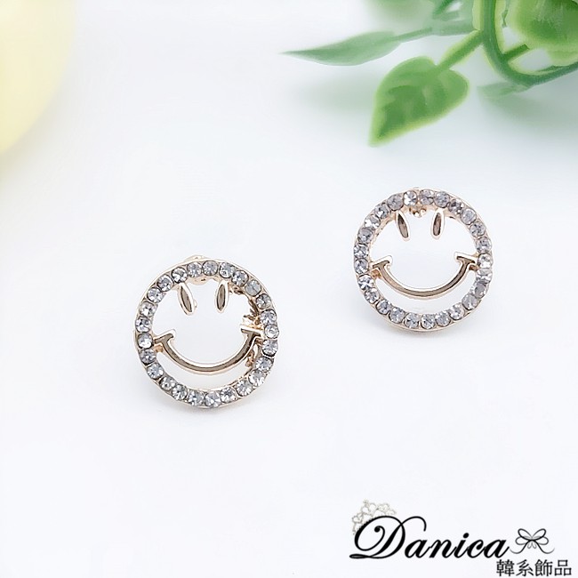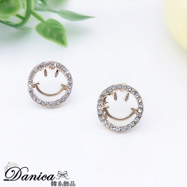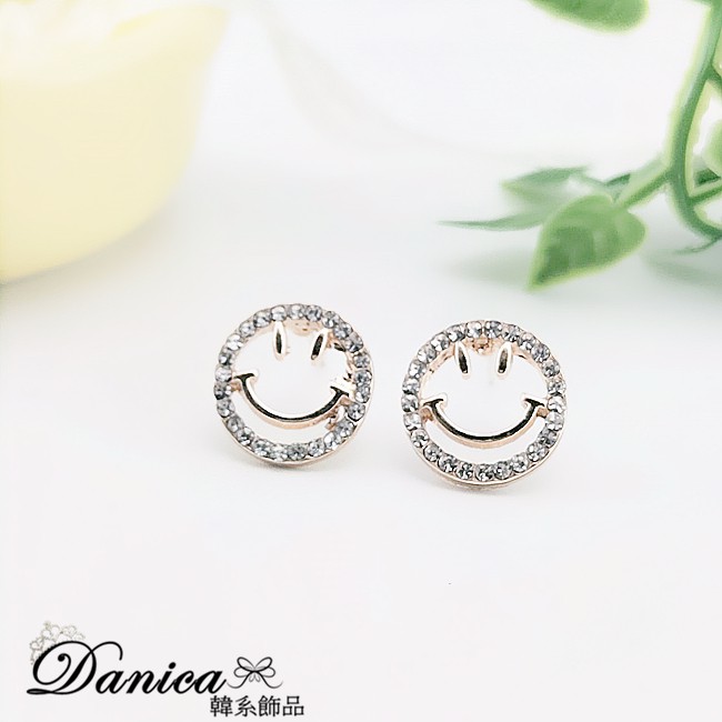 925銀針 韓國少女氣質甜美簍空微笑心情水鑽耳環 K93701 台灣出貨 Danica 韓系飾品 韓國連線金色針式Danica 韓系飾品 耳環