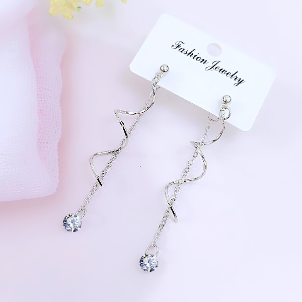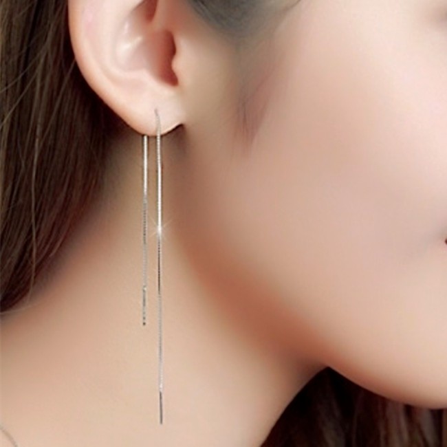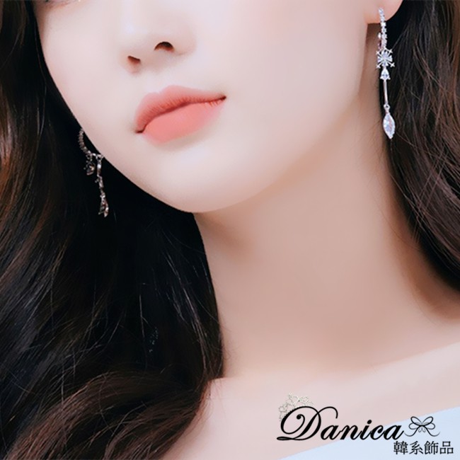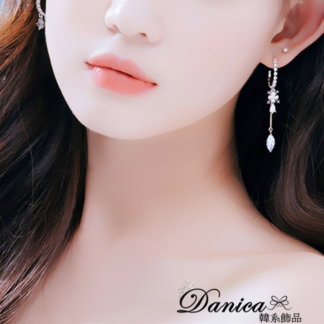 耳線 韓國氣質甜美閃亮經典流線銀飾長耳環 耳線K92297 台灣出貨 Danica 韓系飾品 韓國連線如圖針式Danica 韓系飾品 耳環