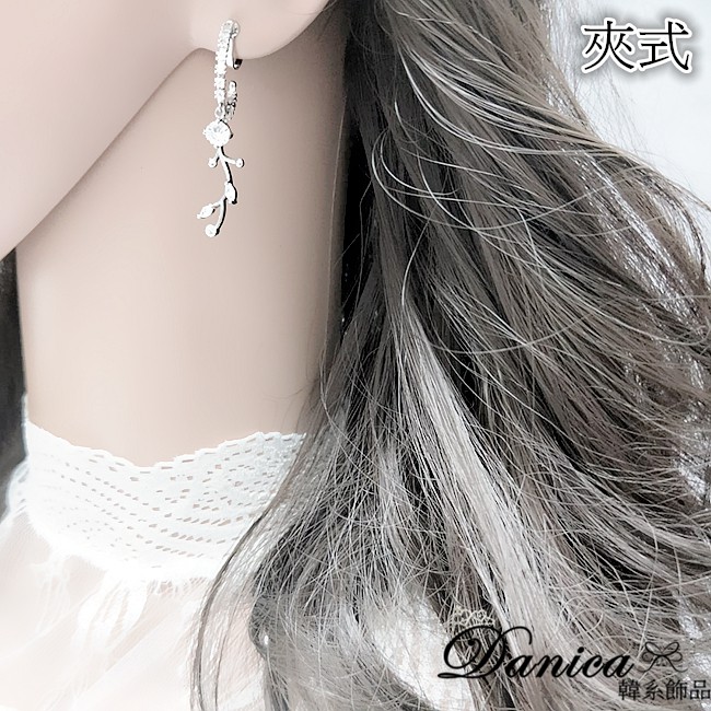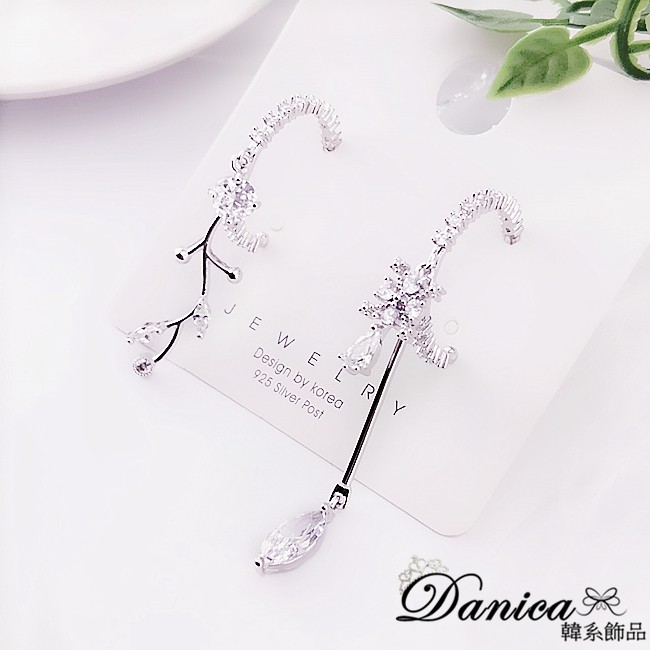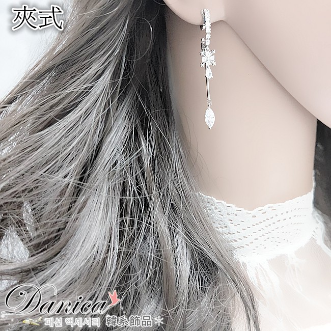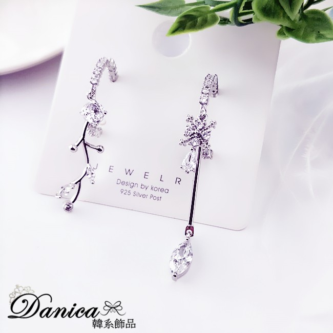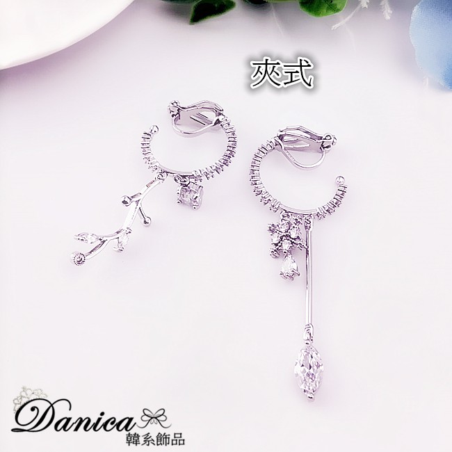 925銀針 夾式耳環 韓國女神氣質閃亮微鑲幾何圓圈葉子水滴不對稱耳環 K93753 台灣出貨 Danica 韓系飾品銀色不對稱針式|銀色不對稱夾式(無耳洞配戴)Danica 韓系飾品 耳環