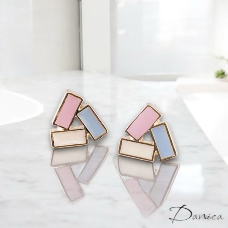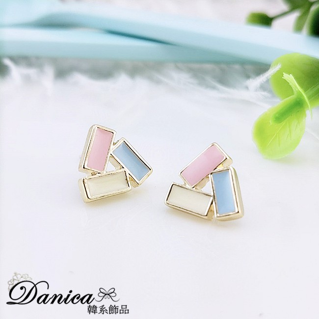 針式 夾式耳環 韓國少女氣質甜美糖果色簡約幾何三角型耳環 K93313 台灣出貨 Danica 韓系飾品 韓國連線