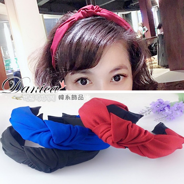 髮箍 韓國連線 秒殺款 氣質甜美 簡約 百搭扭轉打結寬髮箍(5色) K7875 批發價 Danica 韓系飾品深藍|紅色|寶藍|玫紅|黑色HeadbandsDanica 韓系飾品 耳環