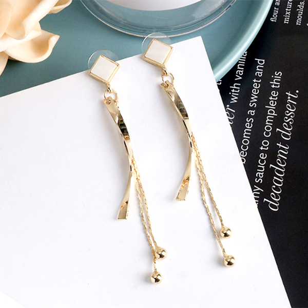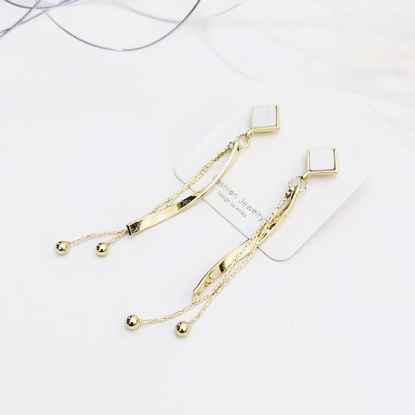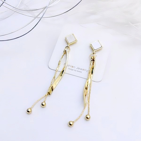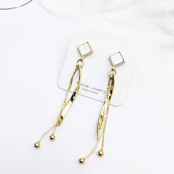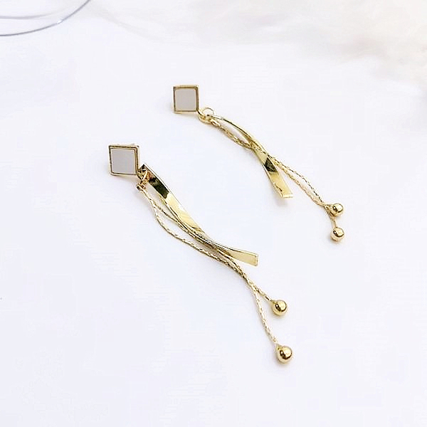 針式 韓國女神氣質浪漫金屬感幾何菱形波浪流蘇耳環 K93957 台灣出貨 Danica 韓系飾品 韓國連線金色針式Danica 韓系飾品 耳環