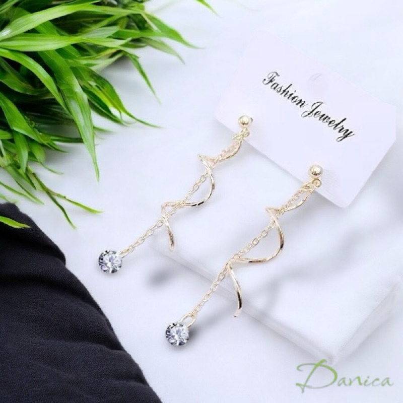 針式 夾式耳環 韓國女神氣質浪漫簡約波浪曲線鋯石流蘇耳環 K94177 台灣出貨 Danica 韓系飾品金色針式|銀色針式|金色夾式(無耳洞配戴)|銀色夾式(無耳洞配戴)Danica 韓系飾品 耳環