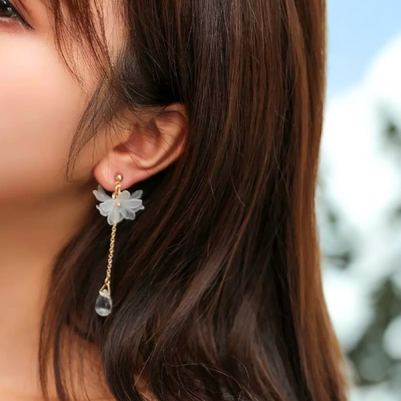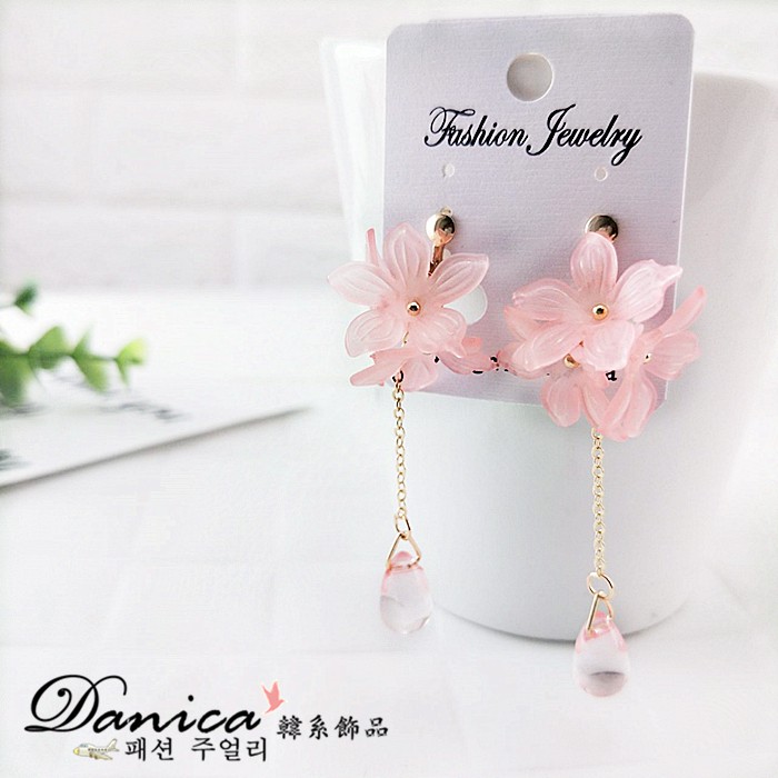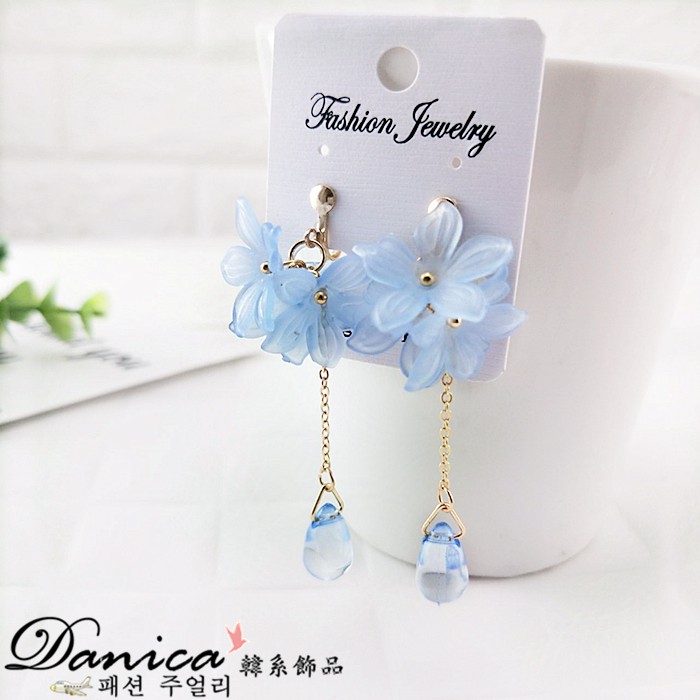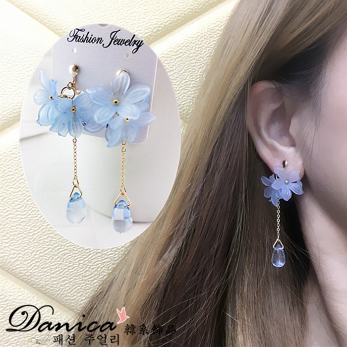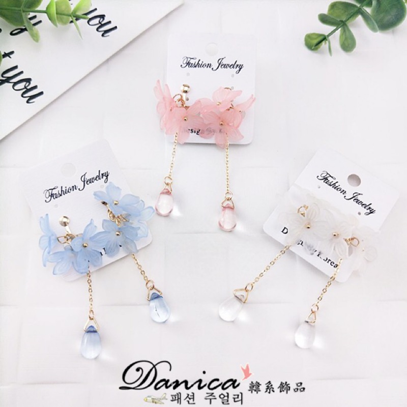925銀針 夾式耳環 韓國女神氣質甜美浪漫仙女花朵流蘇水滴流蘇耳環 K92740 批發價 Danica 韓系飾品 韓國連1.粉色夾式(無耳洞配戴)|2.藍色夾式(無耳洞配戴|3.白色夾式(無耳洞配戴|藍色針式|白色針式|粉色針式Danica 韓系飾品 耳環